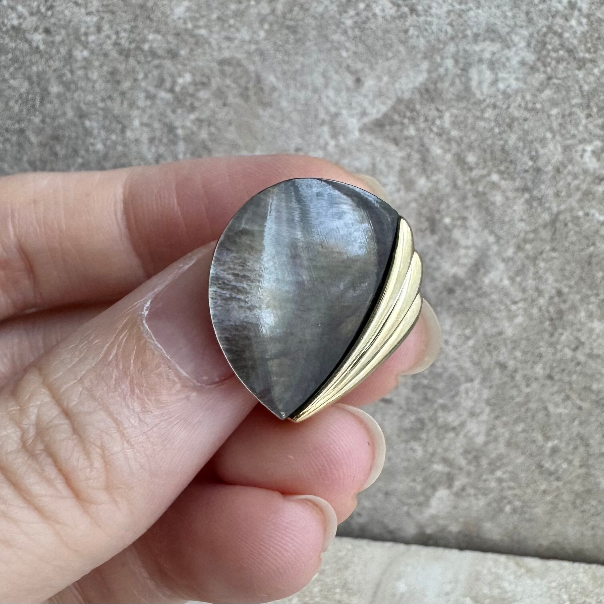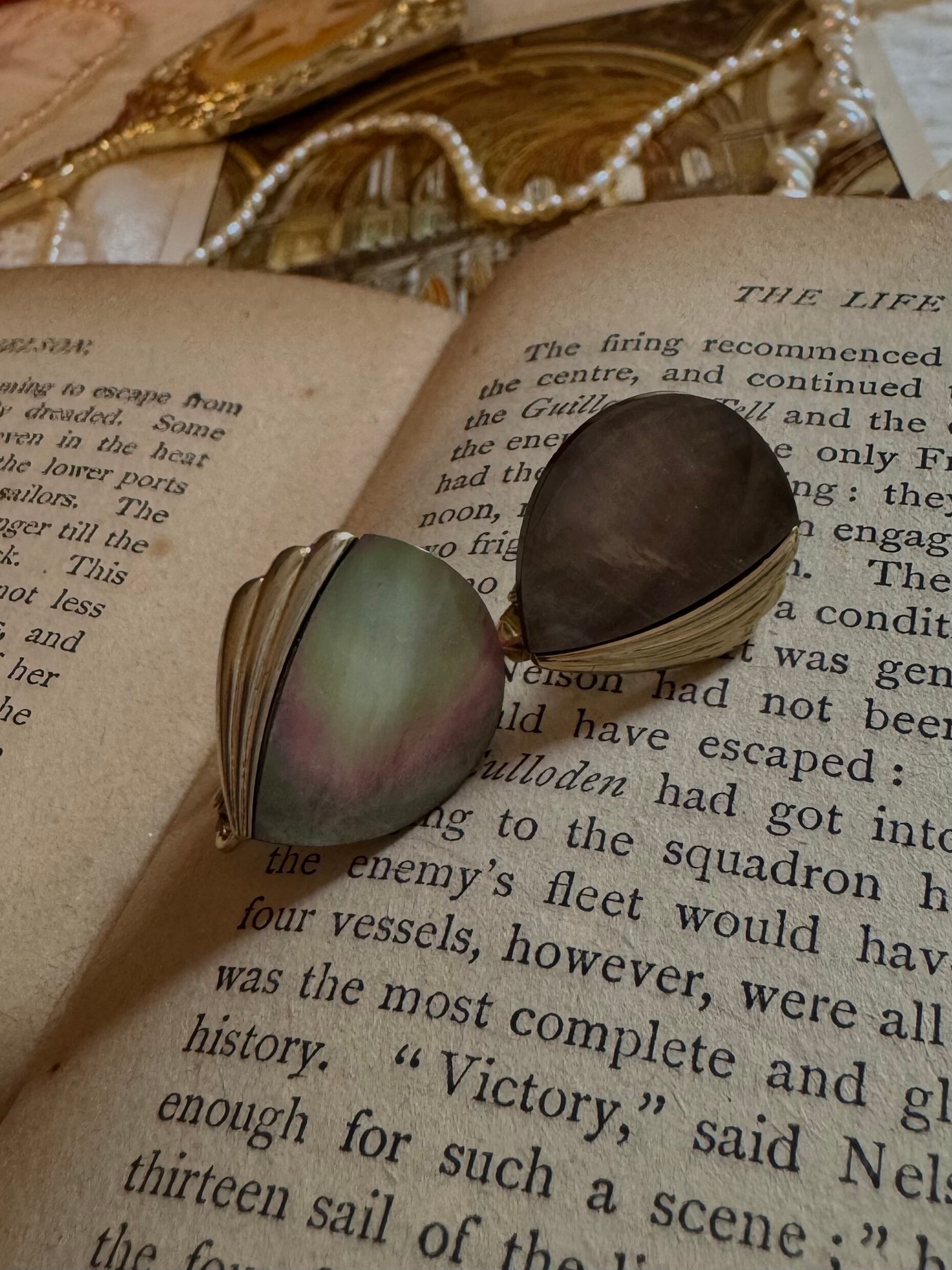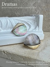 虹色がかったグレーのシェルがゴールドに映えるイヤリングです。