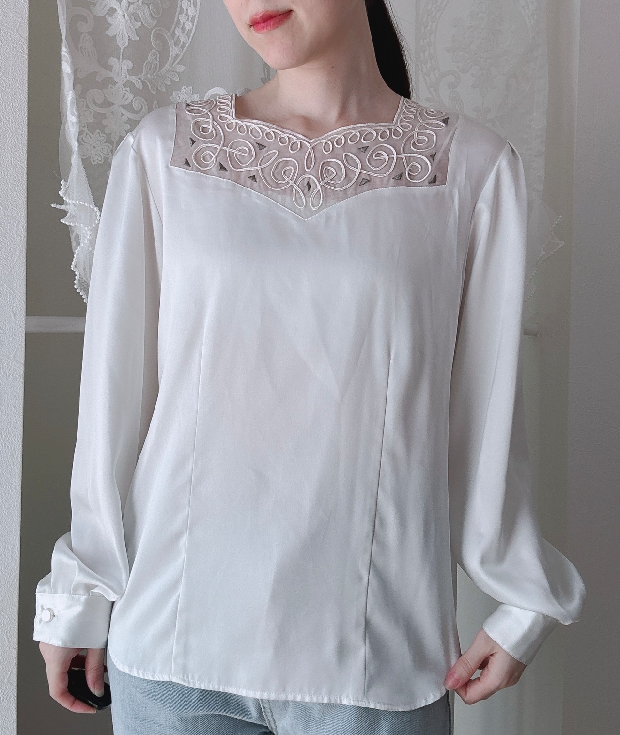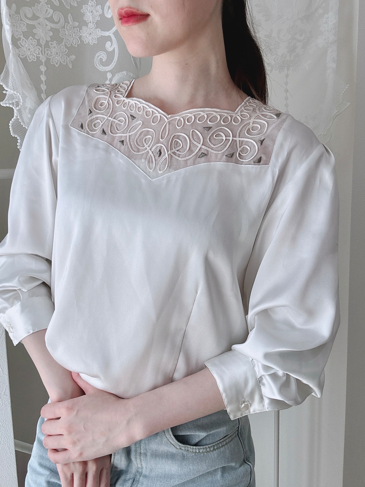 1554.昭和レトロ刺繍トップス