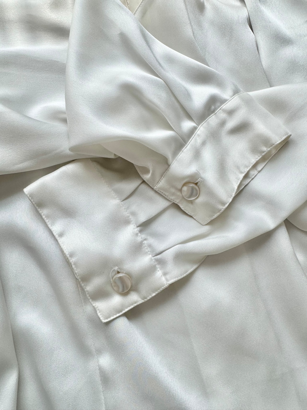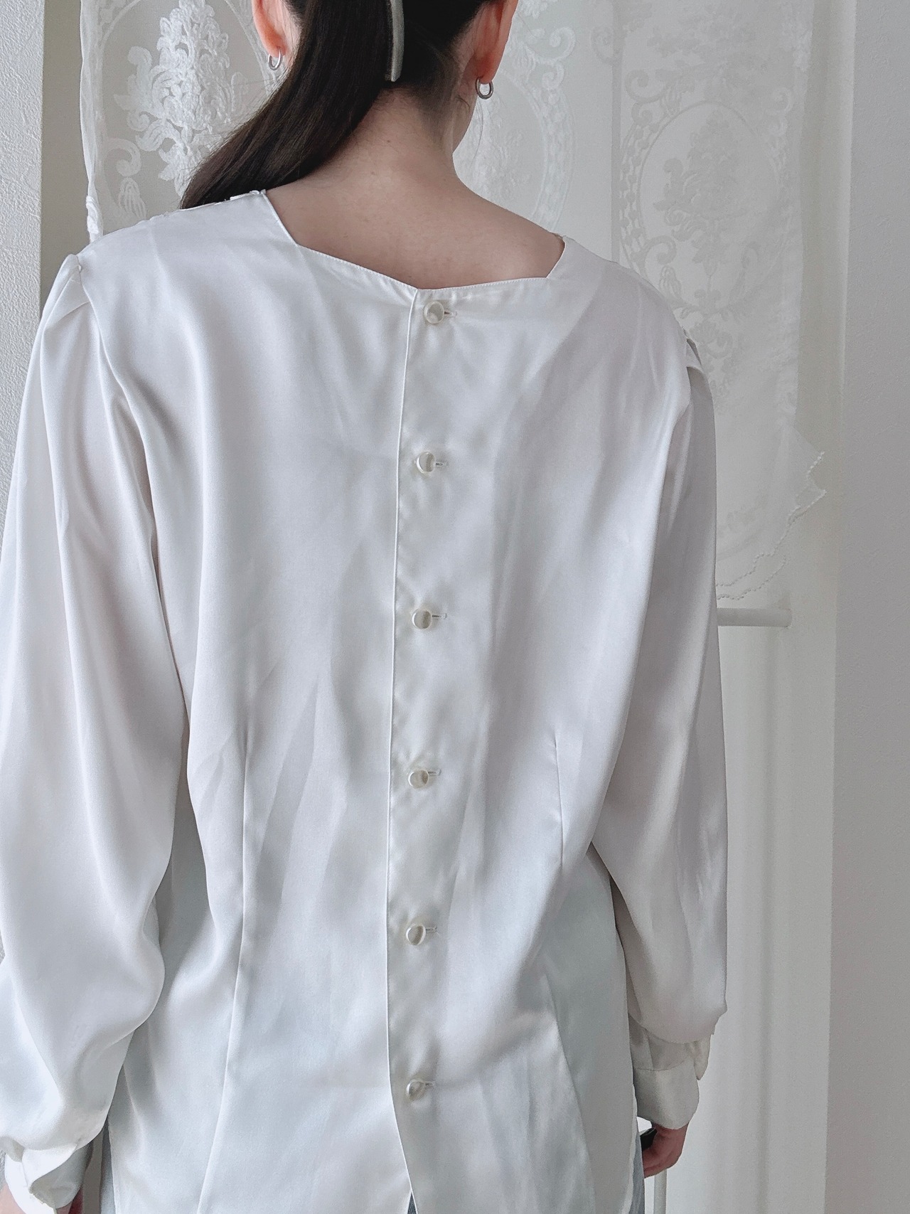少しパール光沢のある、とろんとした肌触りの良い生地のトップスです。