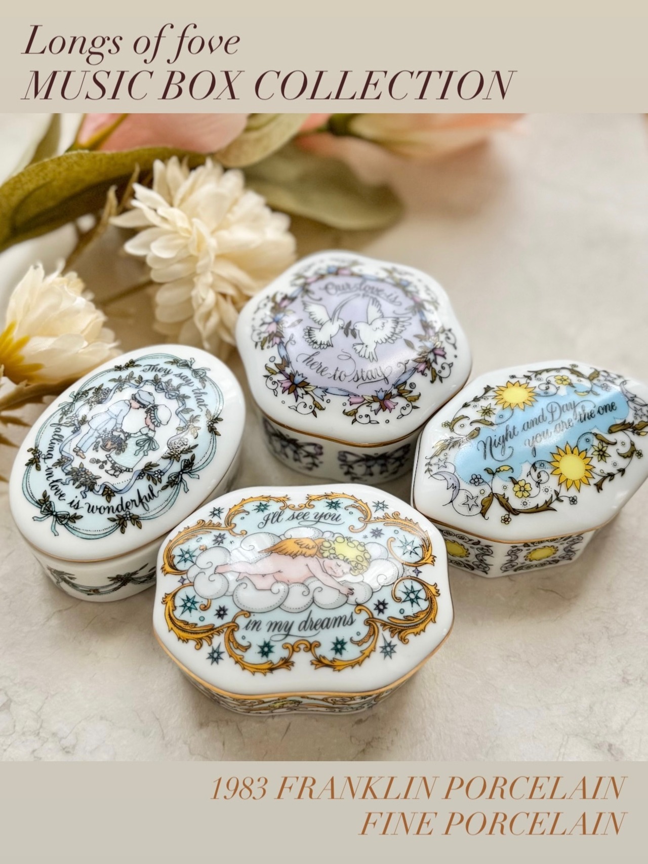 1555. 1556. 【希少・ヴィンテージ】Franklin Porcelain 高級陶器オルゴール 1983年製 Songs of Love コレクション Kate Lloyd Jones デザイン