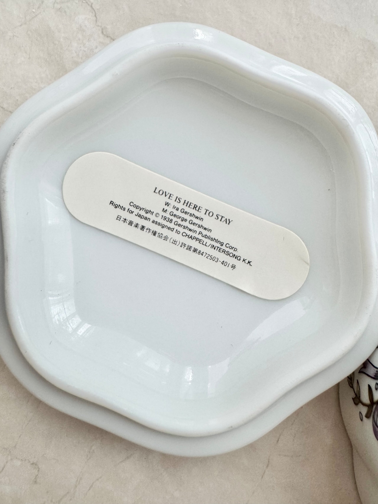 1983年にアメリカの名窯 Franklin Porcelain(フランクリン ポーセリン) から発表された、「Songs of Love」ミュージックボックス・コレクションの一品です。