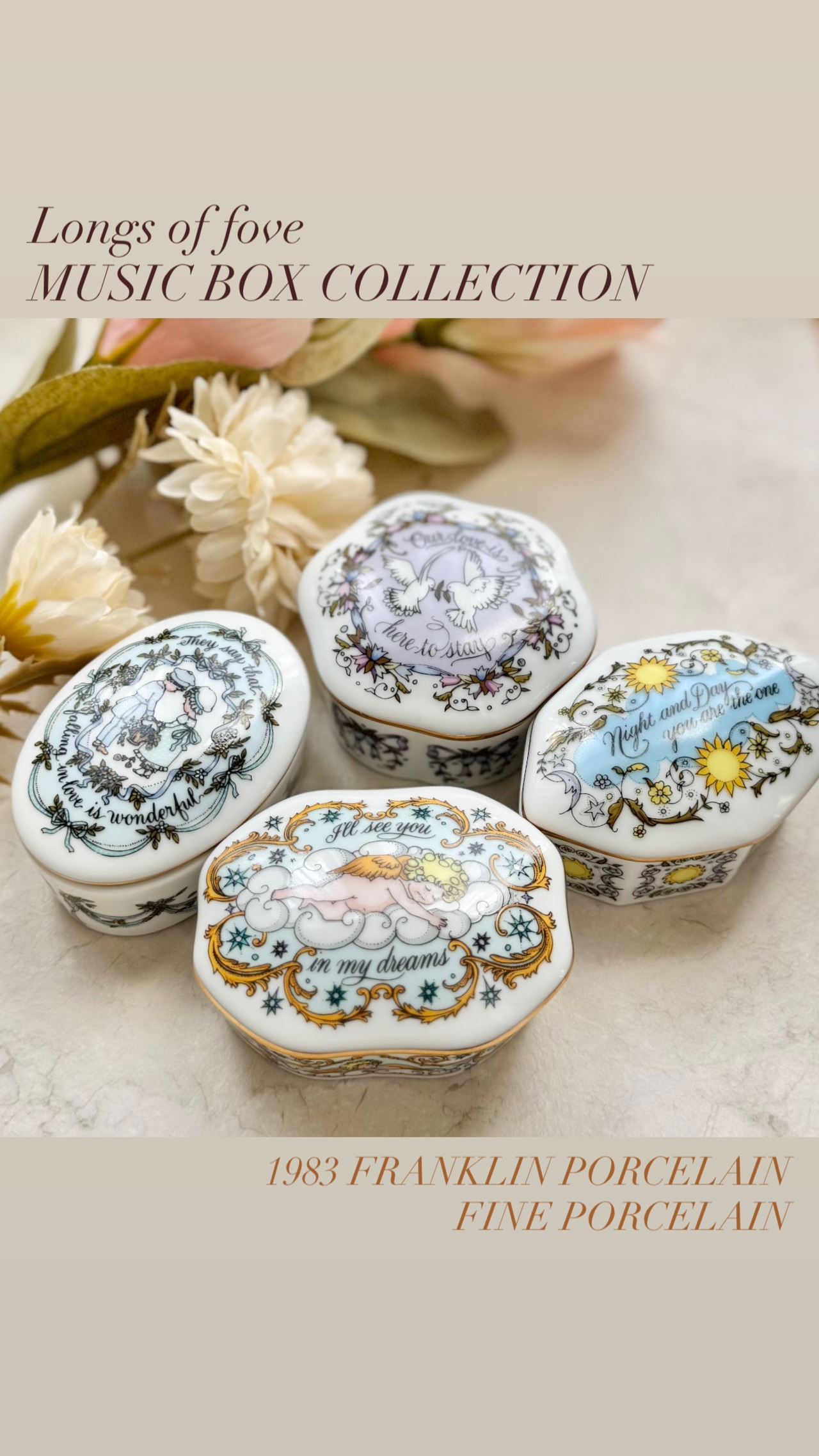 1983年にアメリカの名窯 Franklin Porcelain(フランクリン ポーセリン) から発表された、「Songs of Love」ミュージックボックス・コレクションの一品です。