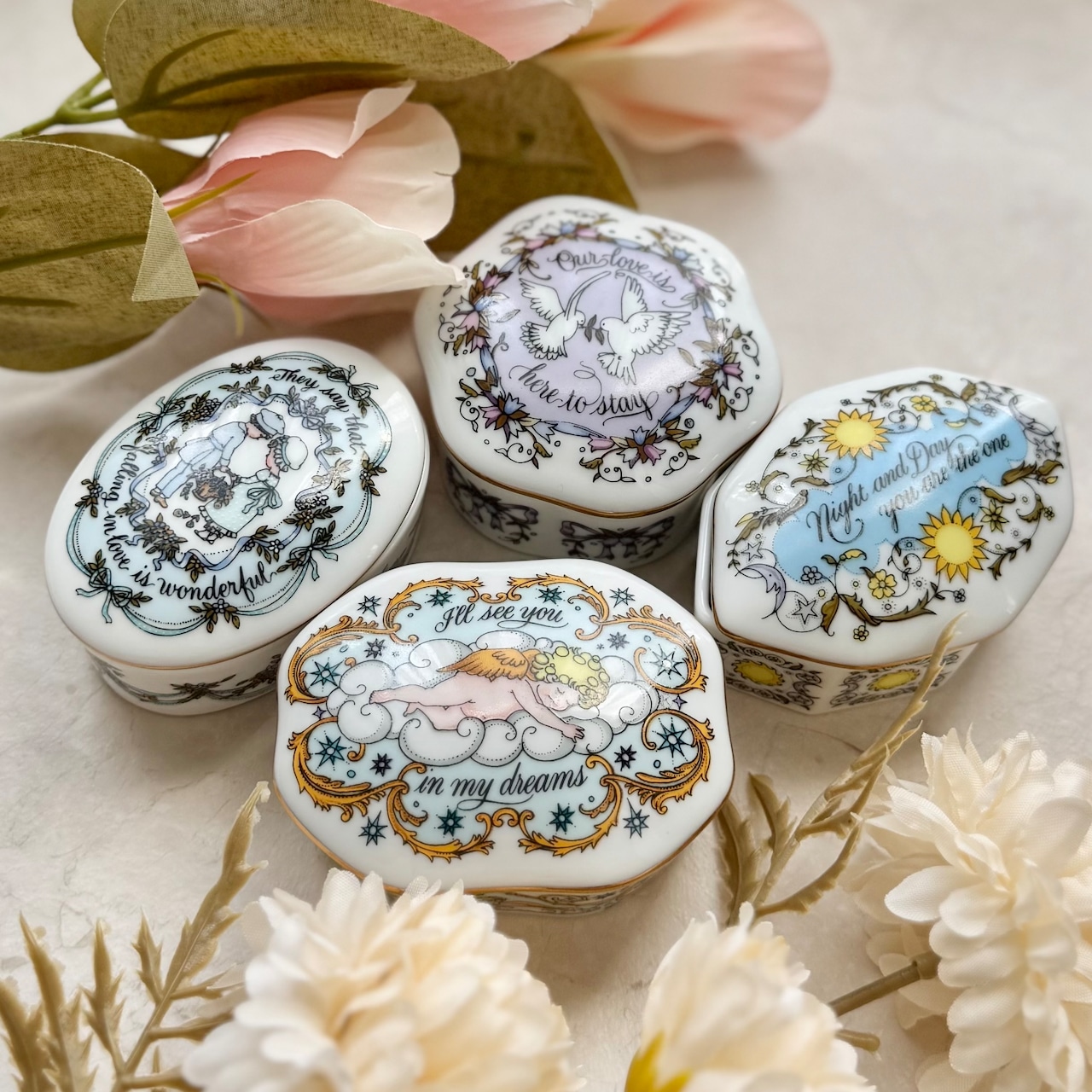 • 1983年にアメリカの名窯 Franklin Porcelain(フランクリン ポーセリン) から発表された、「Songs of Love」ミュージックボックス・コレクションの一品です。