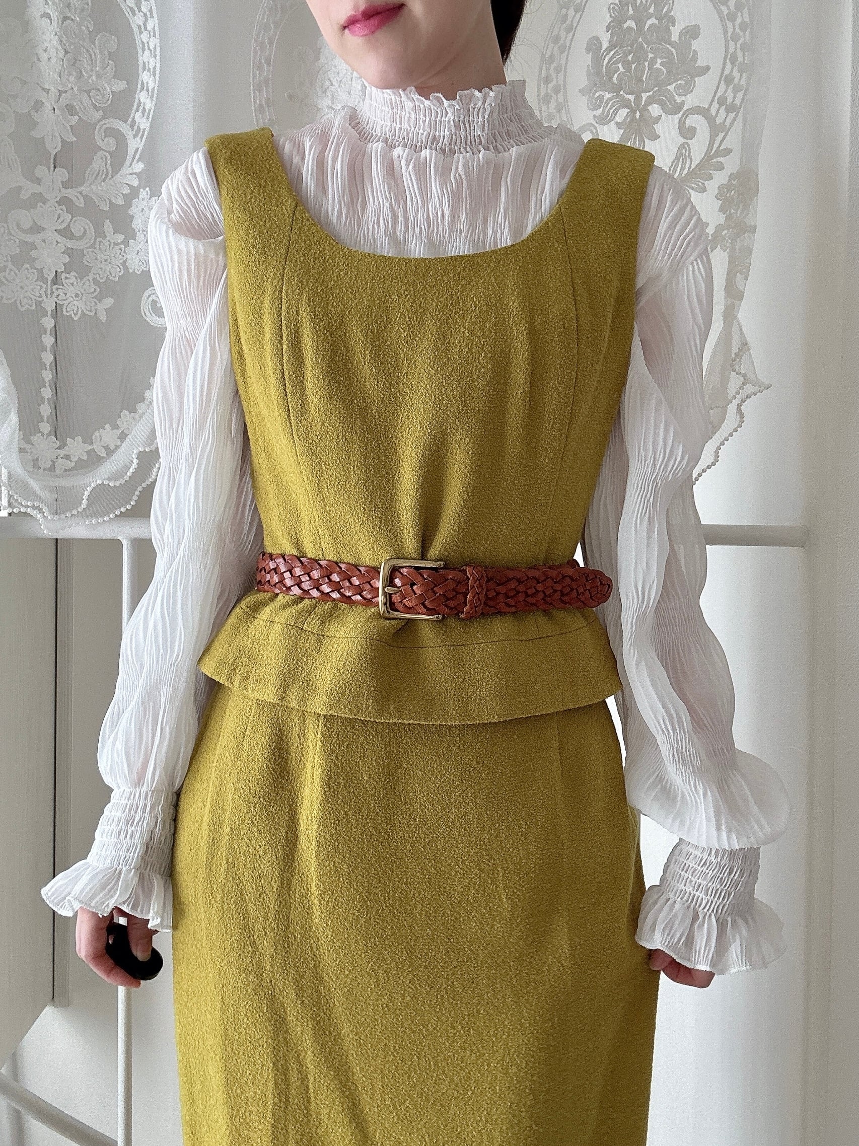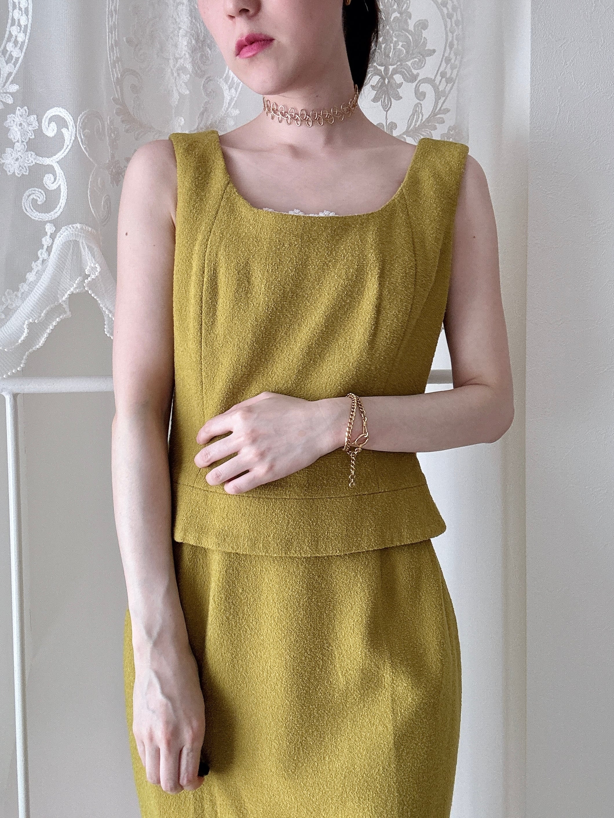 1568. 【日本製・YUKI TORII】モケモケ生地セットアップ/前後2WAYベスト×膝丈スカート/秋冬対応ヴィンテージコーデ