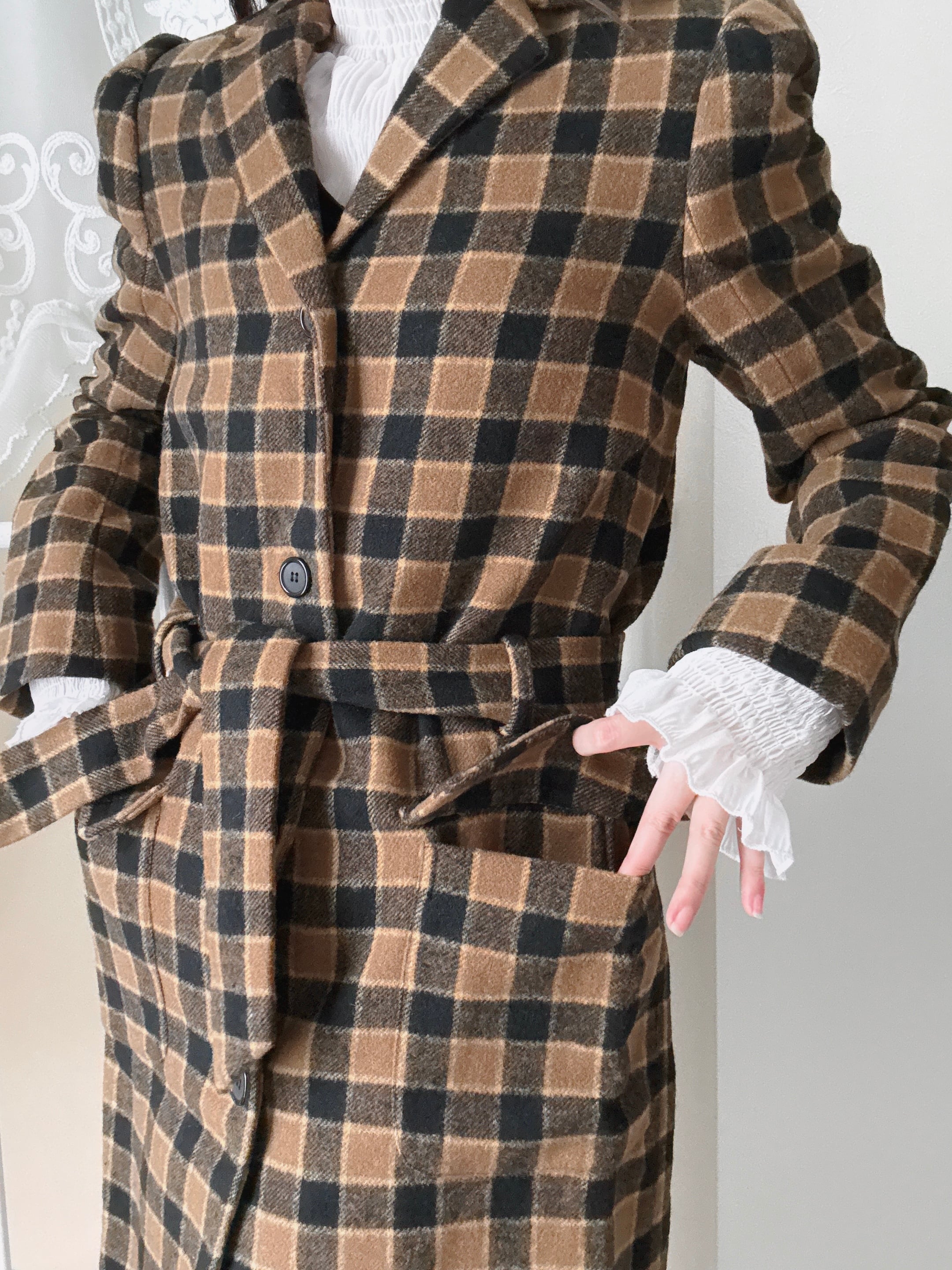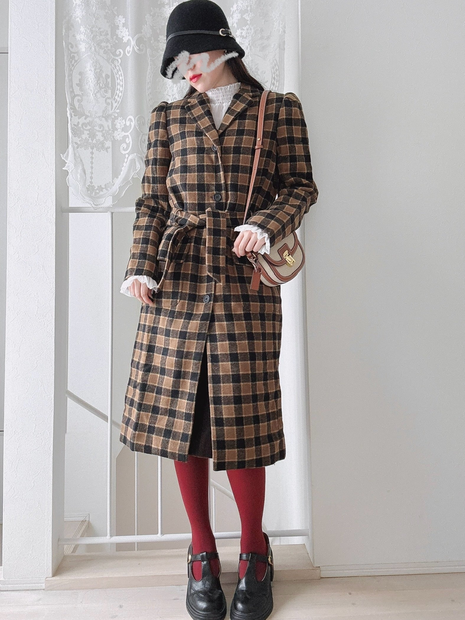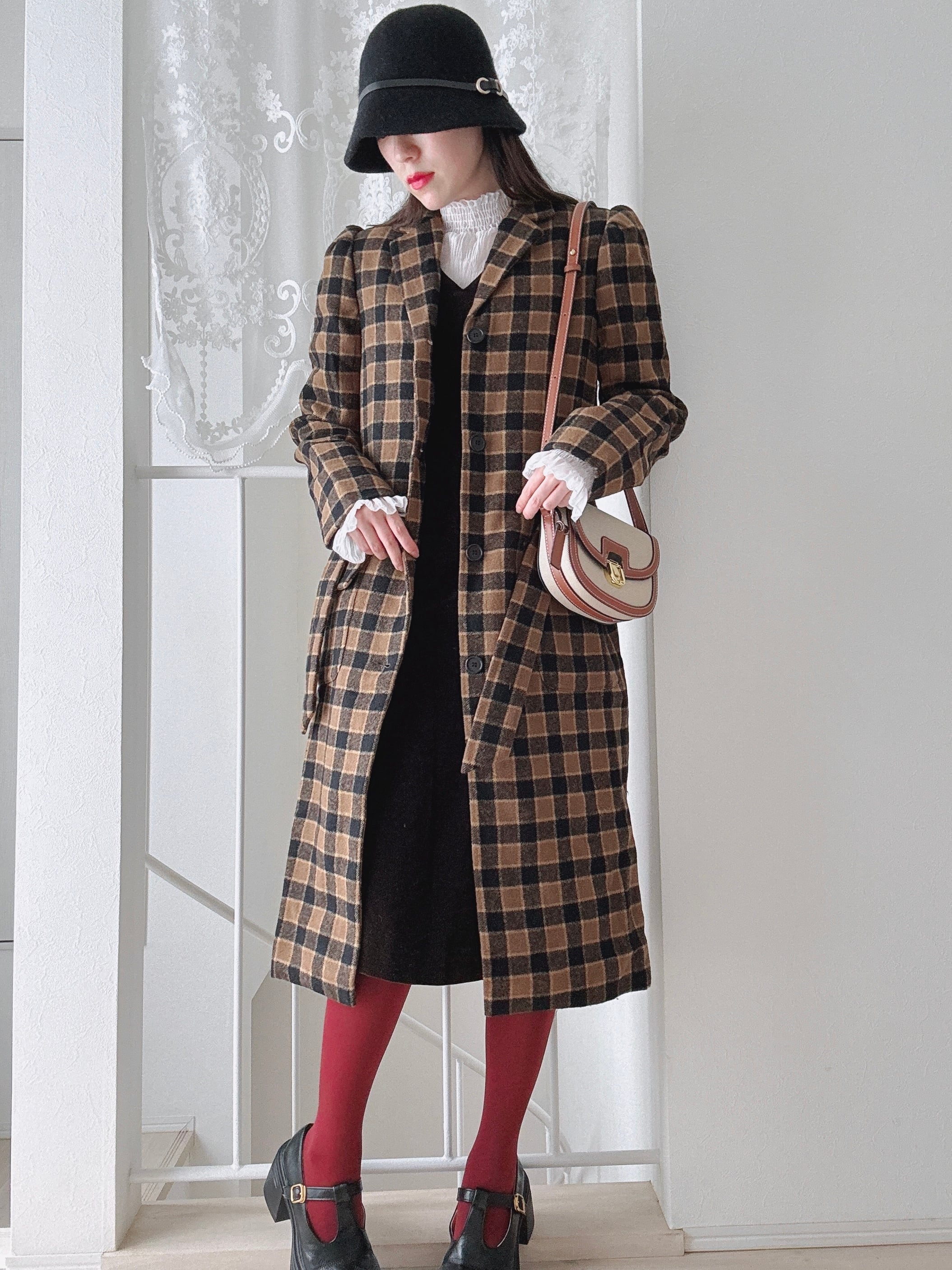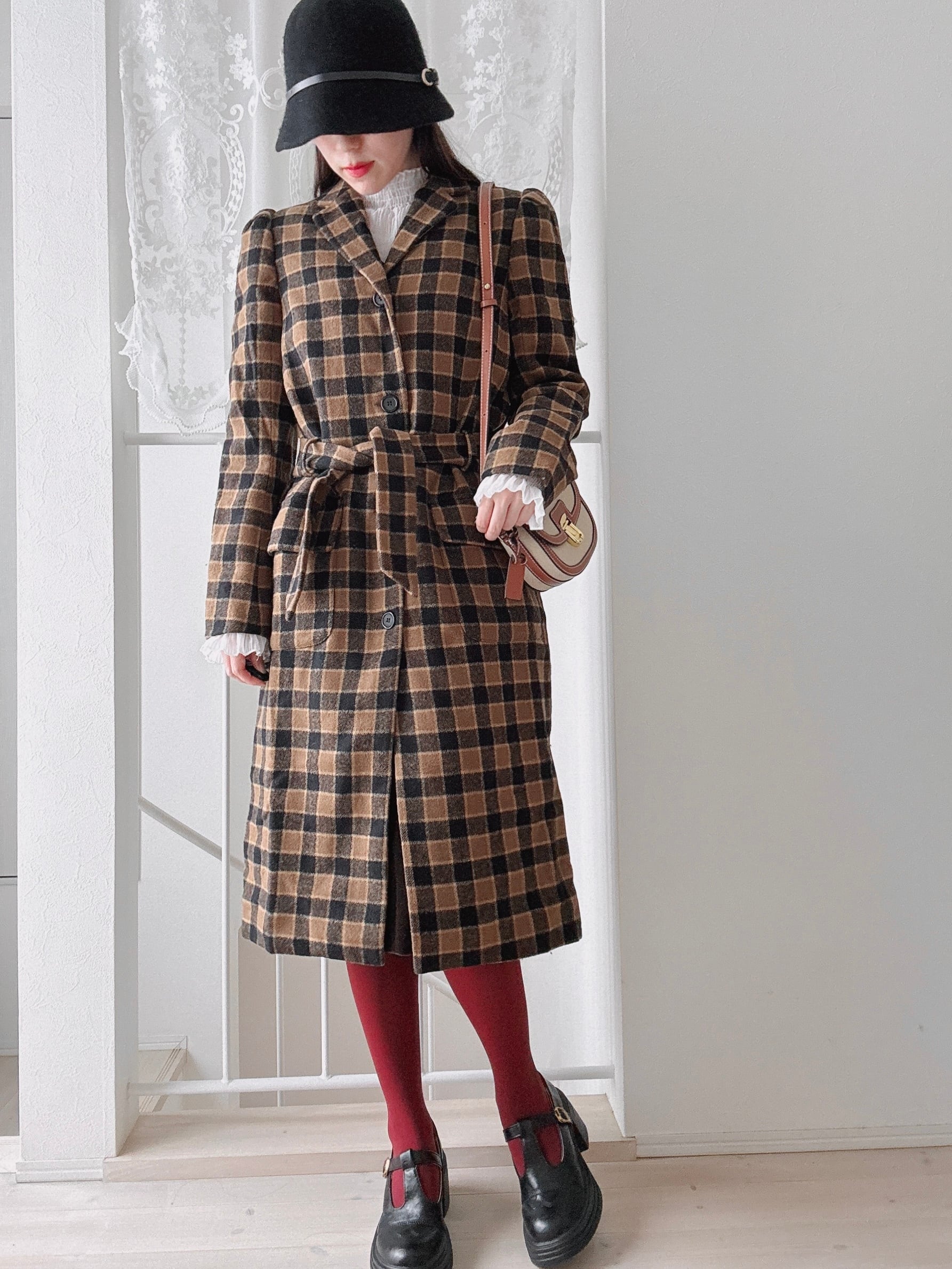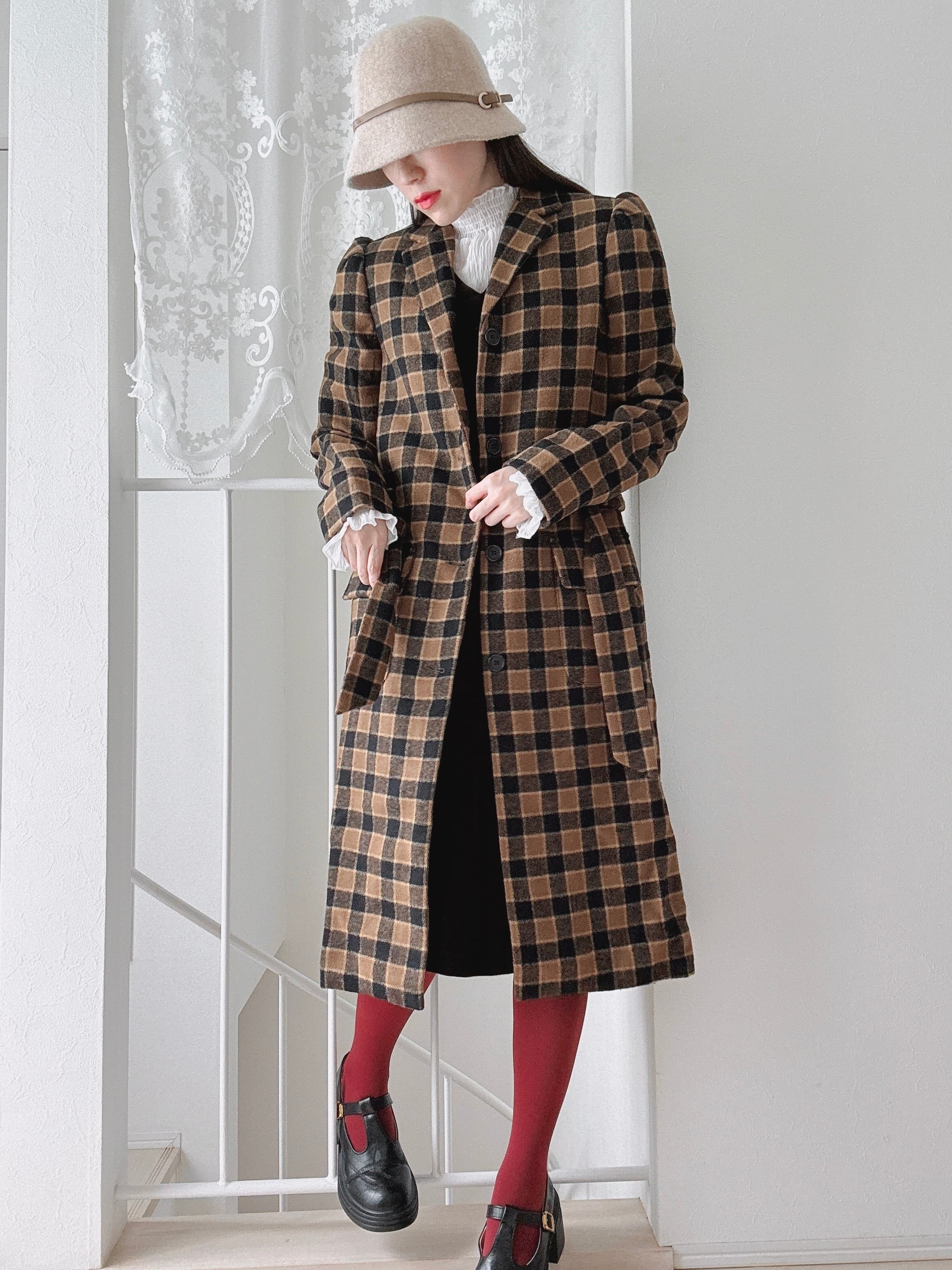 ヴィンテージコート / チェック柄コート / ロングコート / アメリカ製 / ウールコート / ラムウールコート / クラシカルコート / 秋冬アウター / 古着女子 / レトロファッション / Dramas