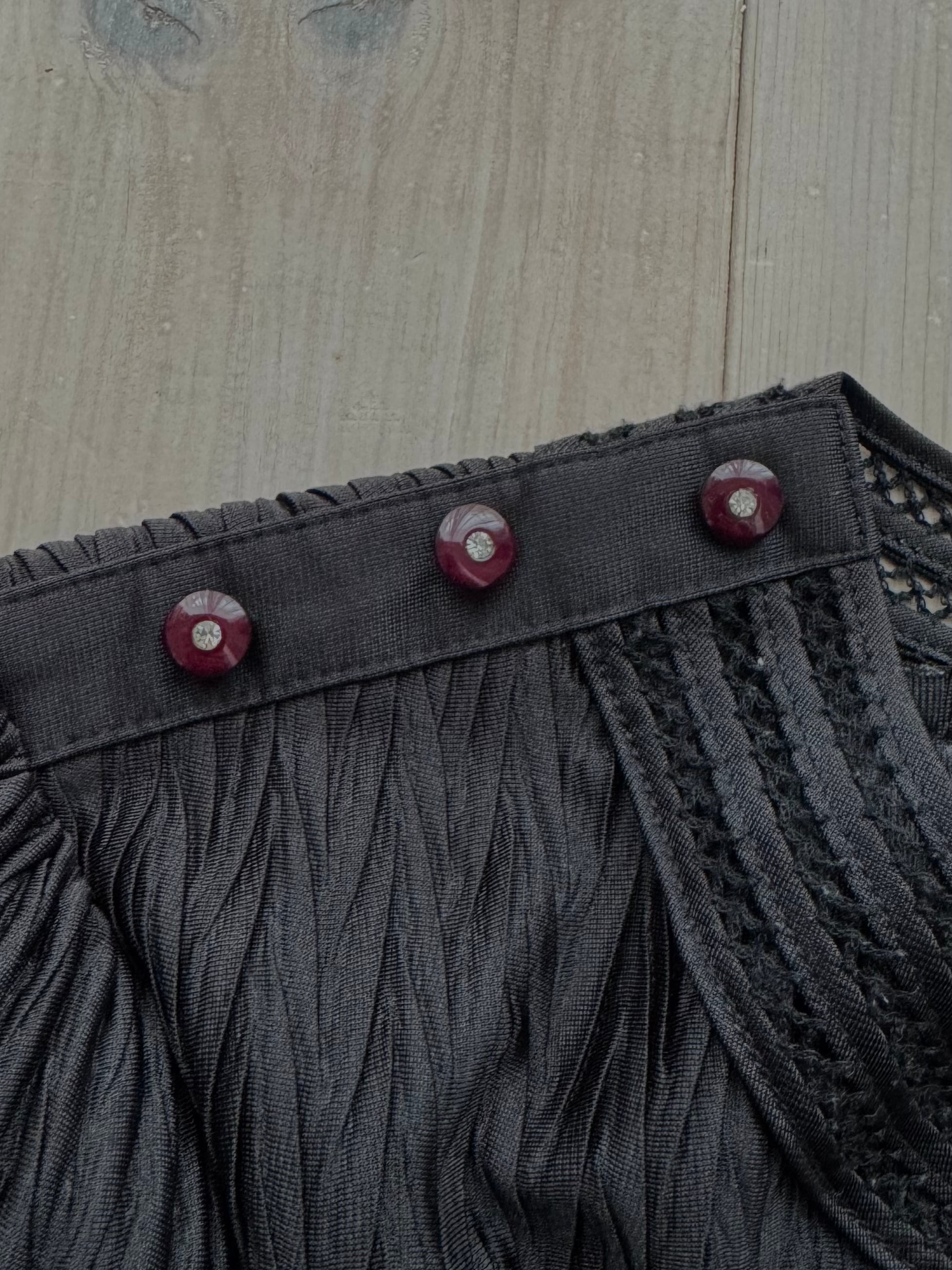 1585. シャーリングプリーツブラウス ブラック ガラスボタン付き 長袖 トップス | DRAMAS(ドラマズ)ヴィンテージ・古着