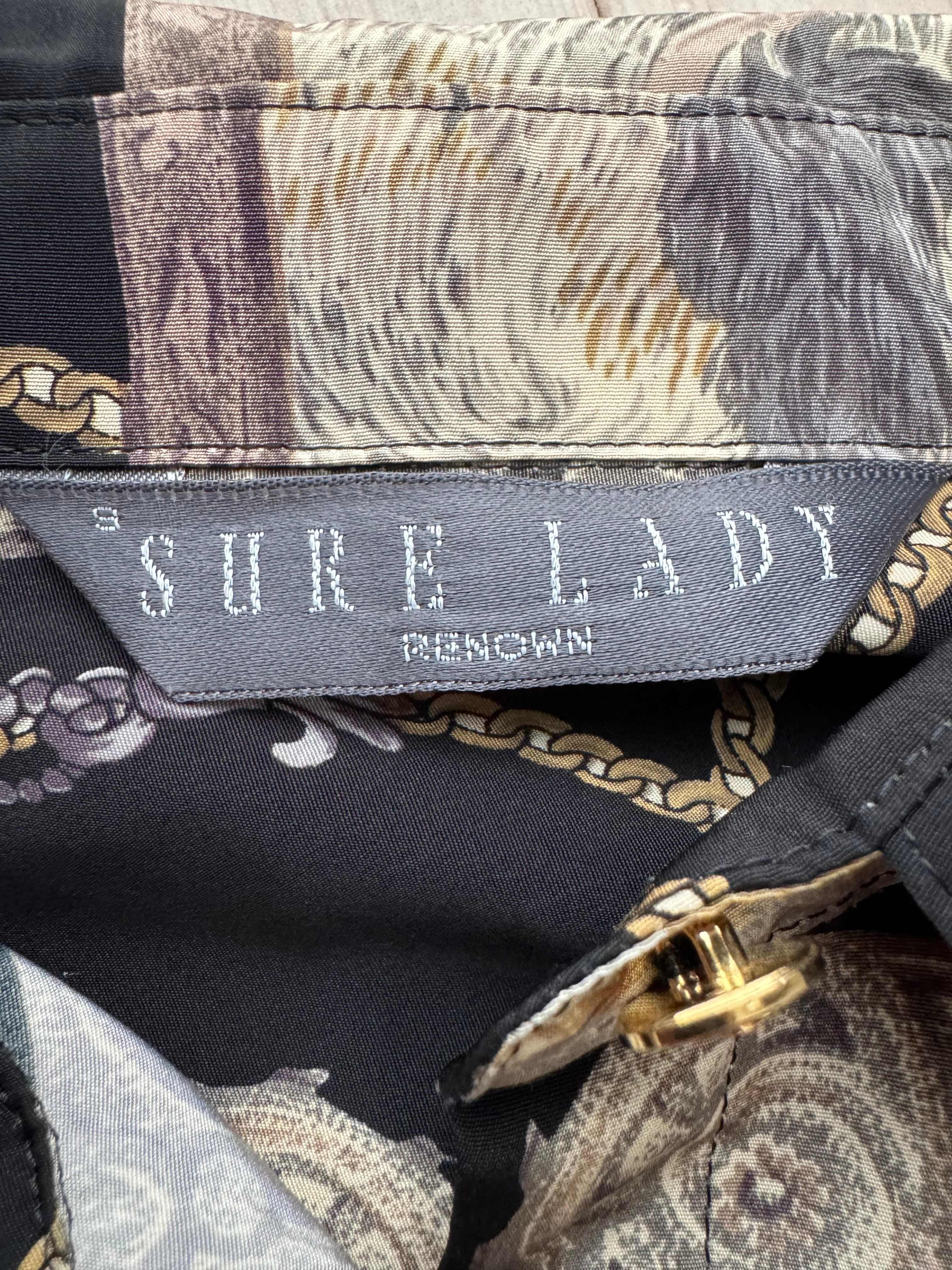 1586. アンティークアートプリント ブラウス ブラック × ゴールドチェーン柄 / ヴィンテージ調 クラシカル シャツ】