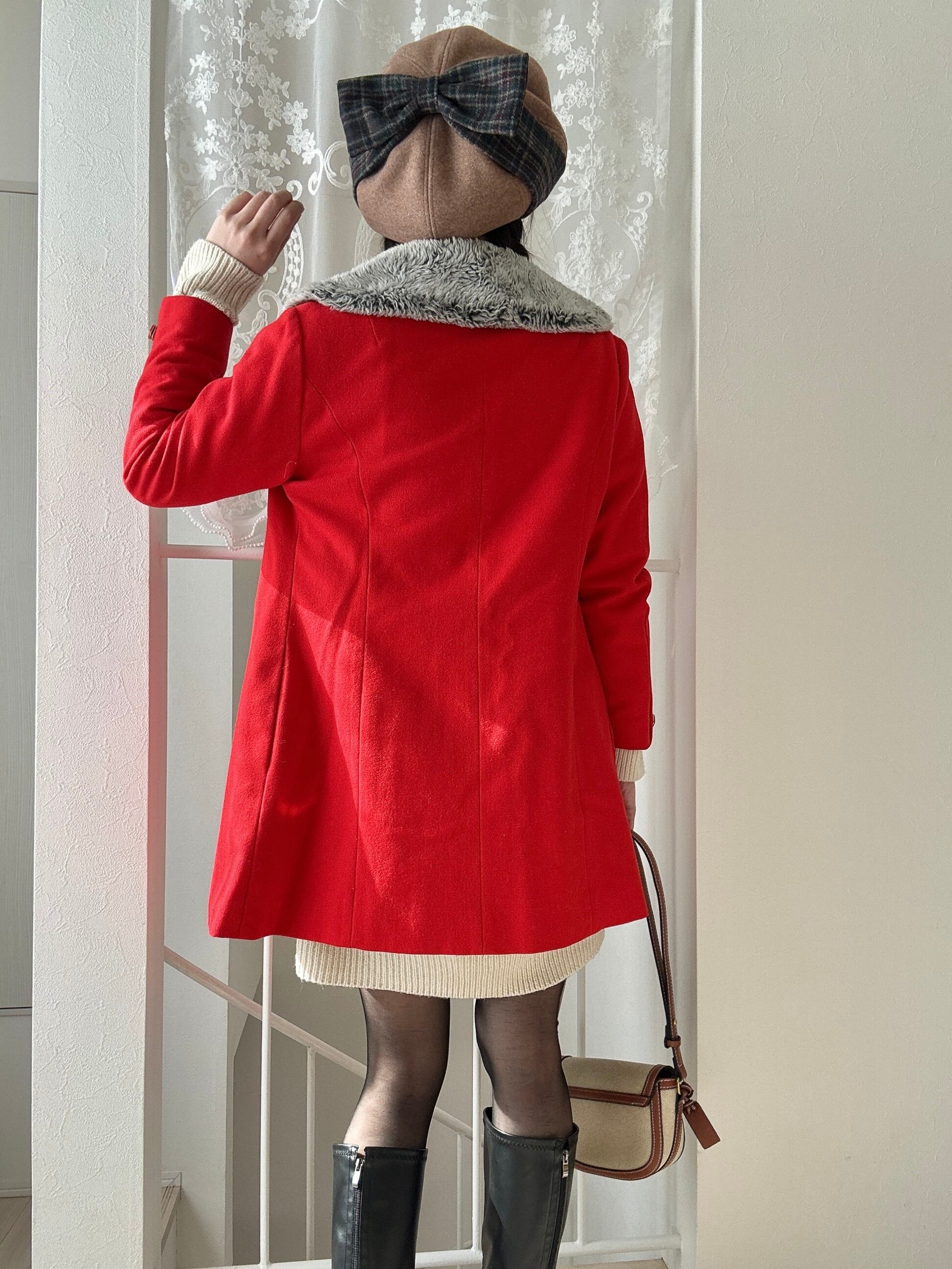 昭和レトロ / ヴィンテージコート / 赤コート / ファー襟コート / ウールコート / 昭和40年代 / レトロファッション / 古着女子