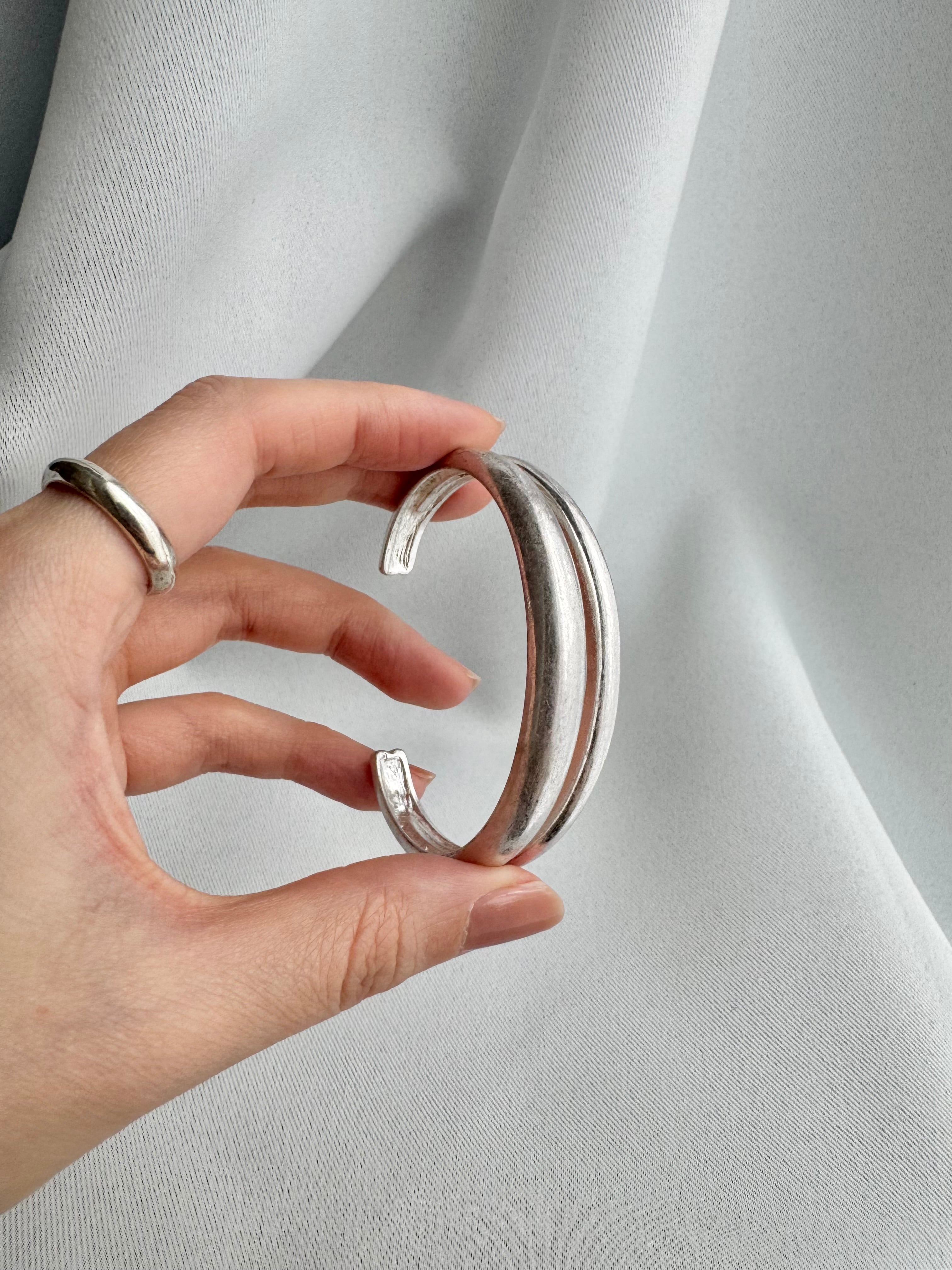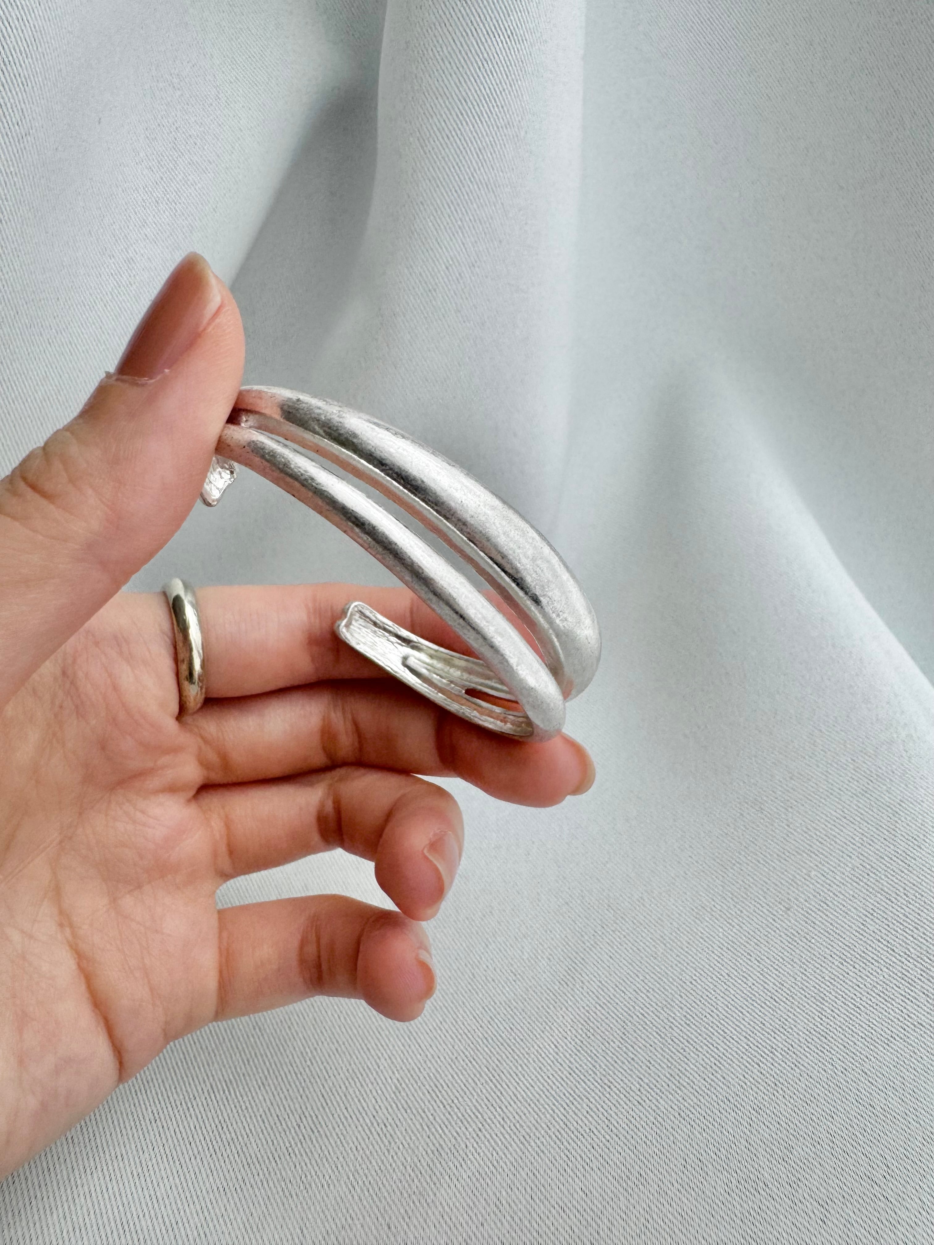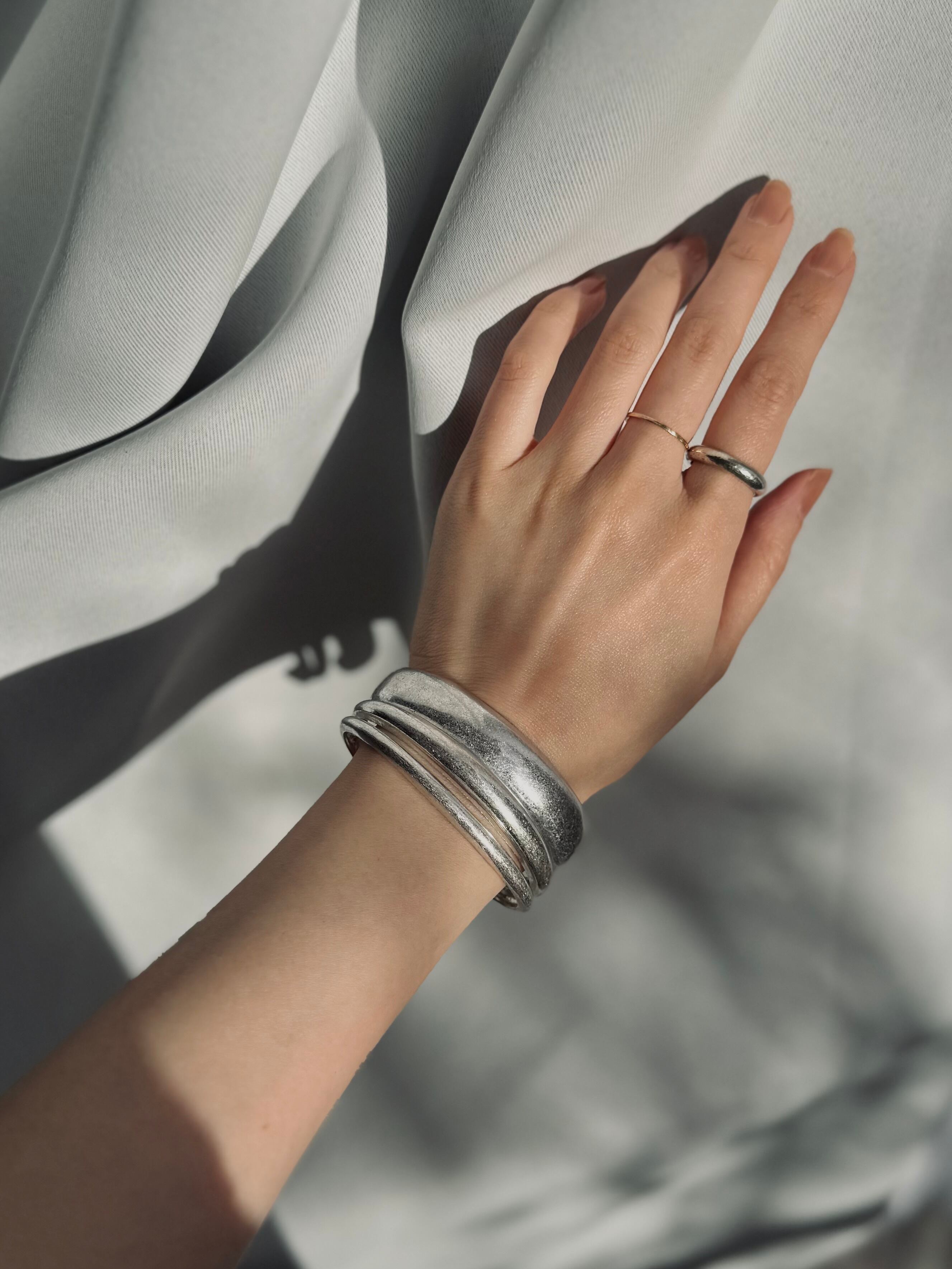 1501. 静寂を纏う 合金デザインバングル|光と影が描くアンニュイな余白アクセサリー【Dramas】