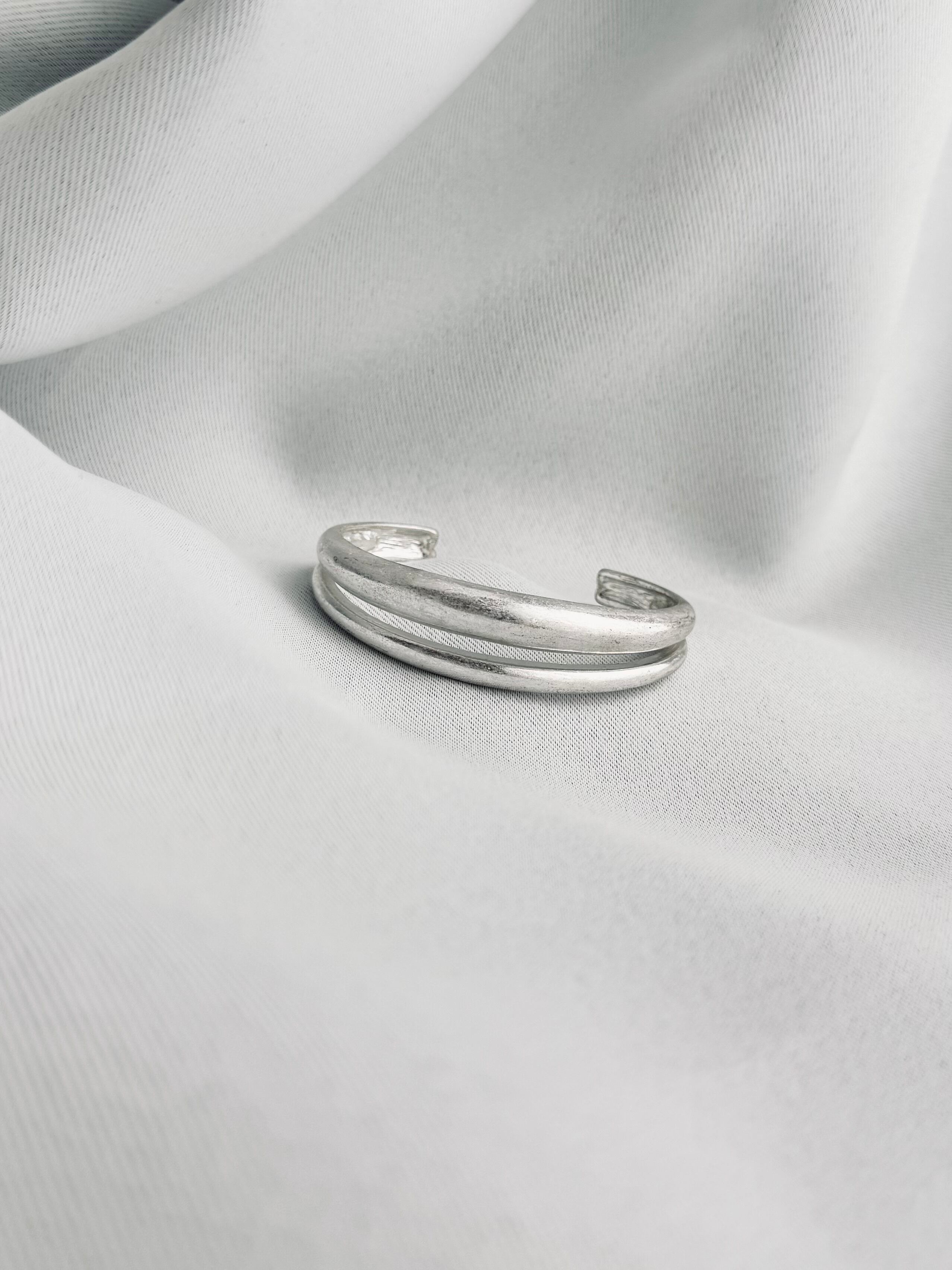 光が当たるたびに、静かに表情を変えるバングル。