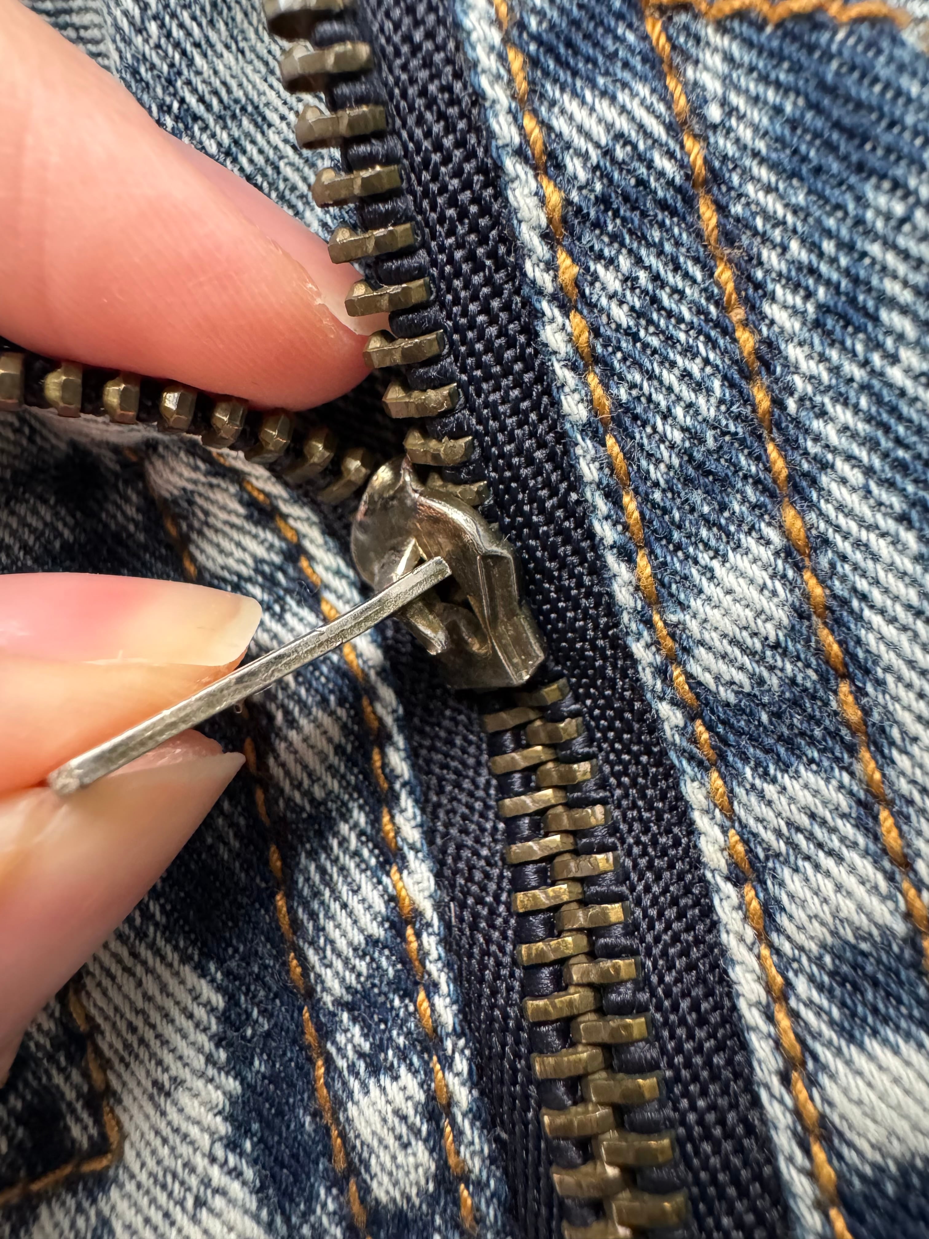 ジッパーにはロック機構付きファスナーが使用されており、ヴィンテージらしいディテールも魅力です。(一部分はロックが緩くなっています)