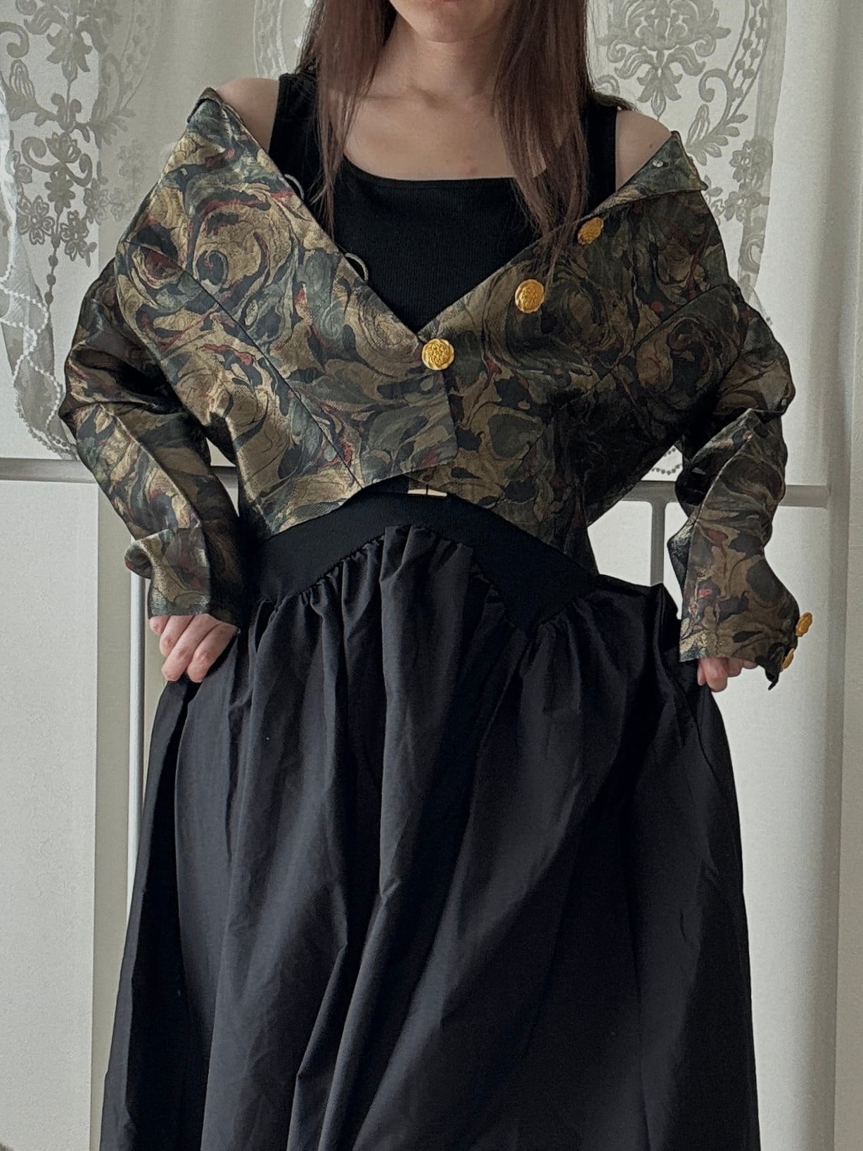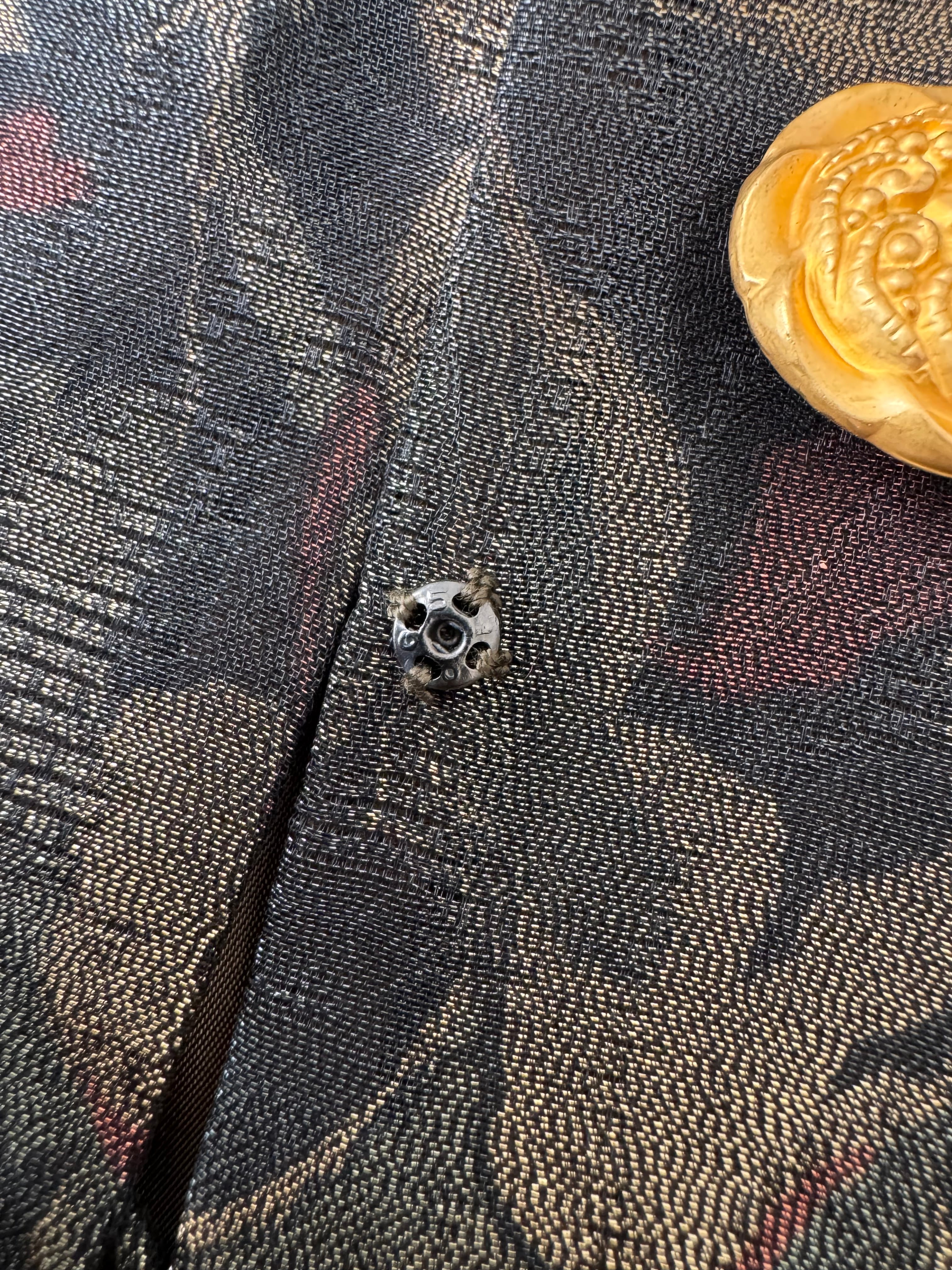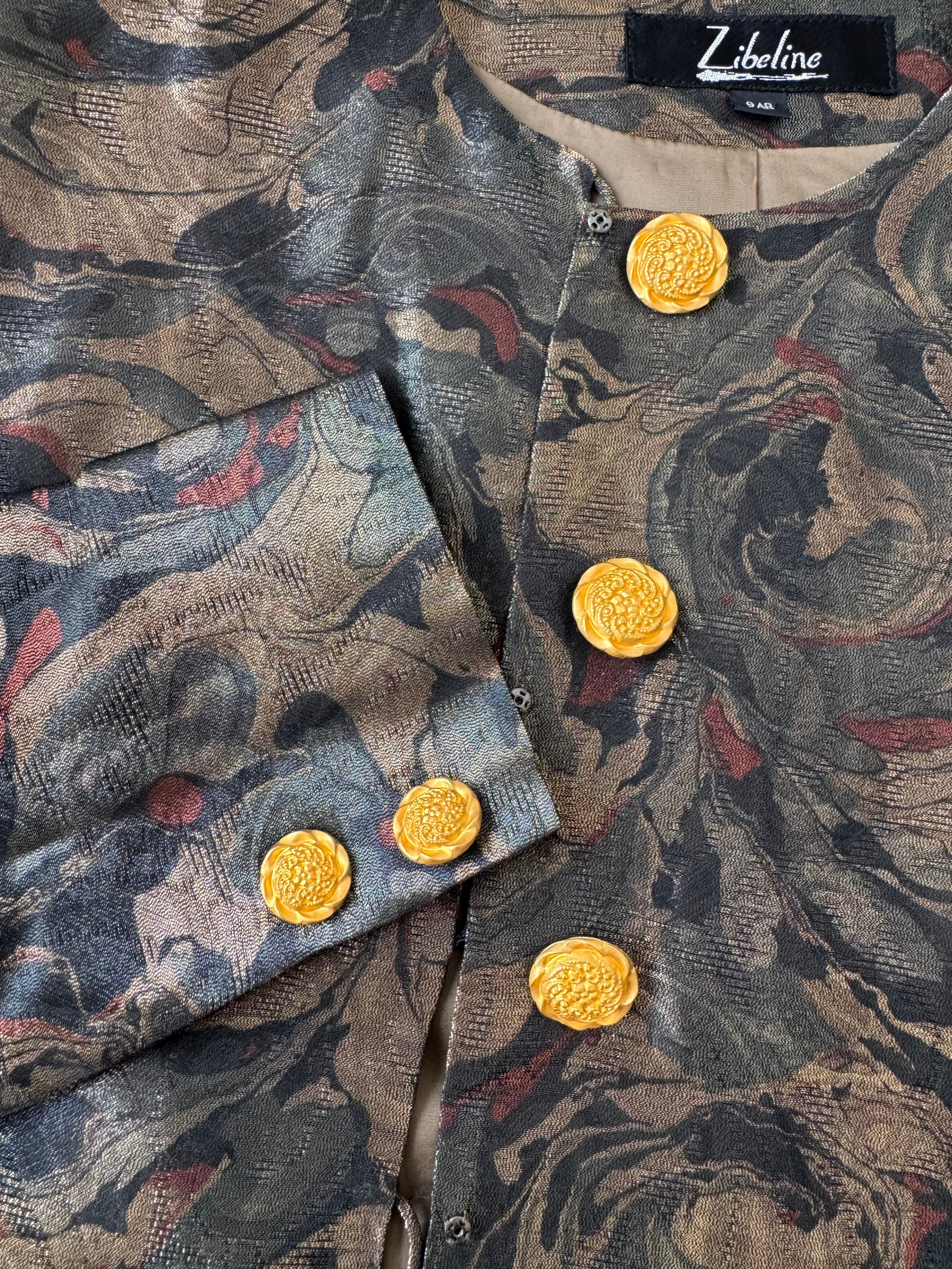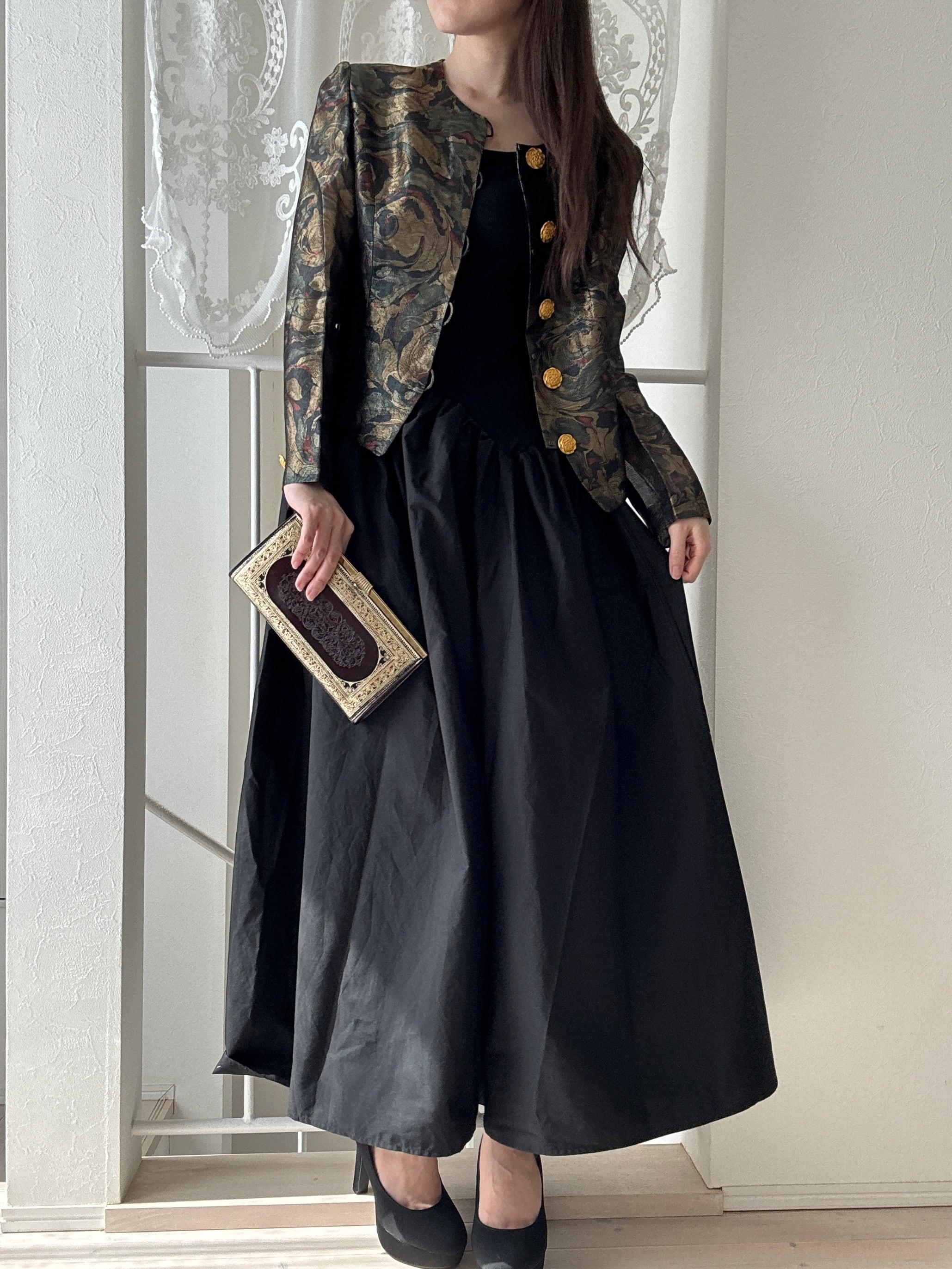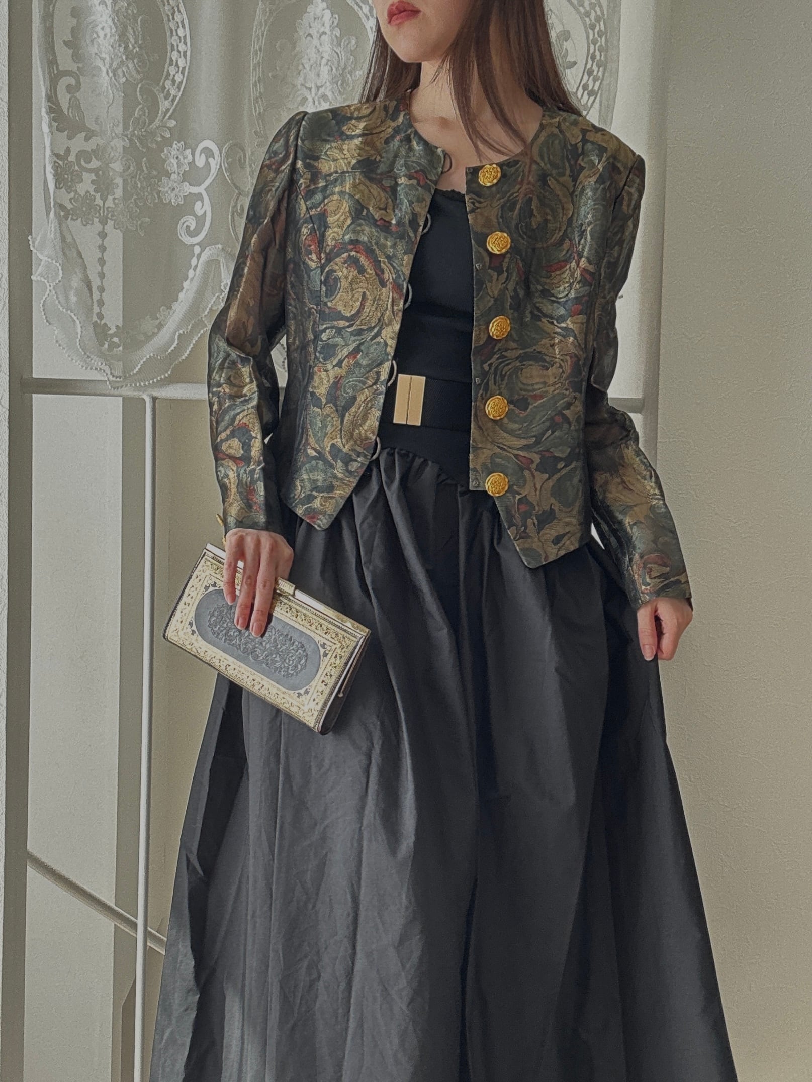1507. フランス生地使用 ゴールド装飾ボタン ラメ織りクラシカルジャケット / モスグリーン 日本製 ヴィンテージ