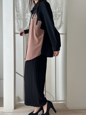 シルエットはゆとりがあり、スカート・パンツどちらにも合わせやすいバランス。
