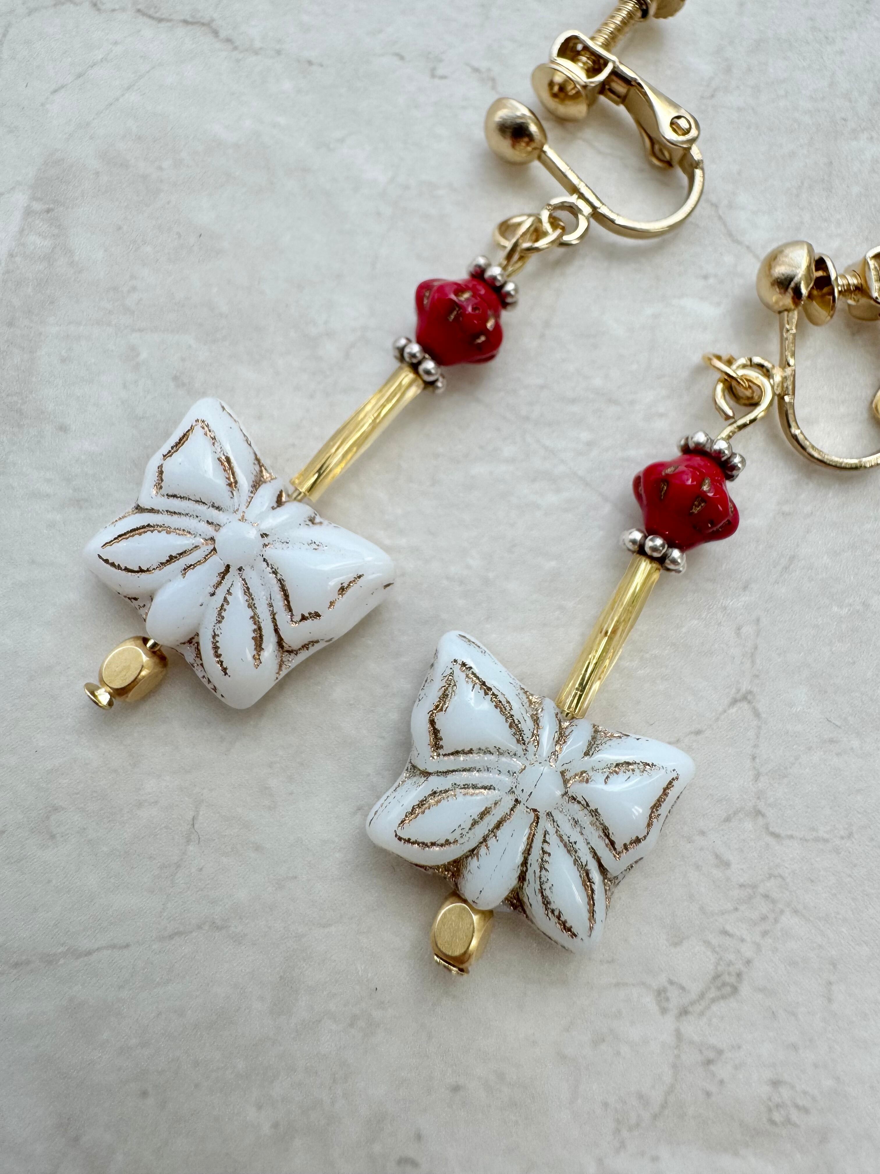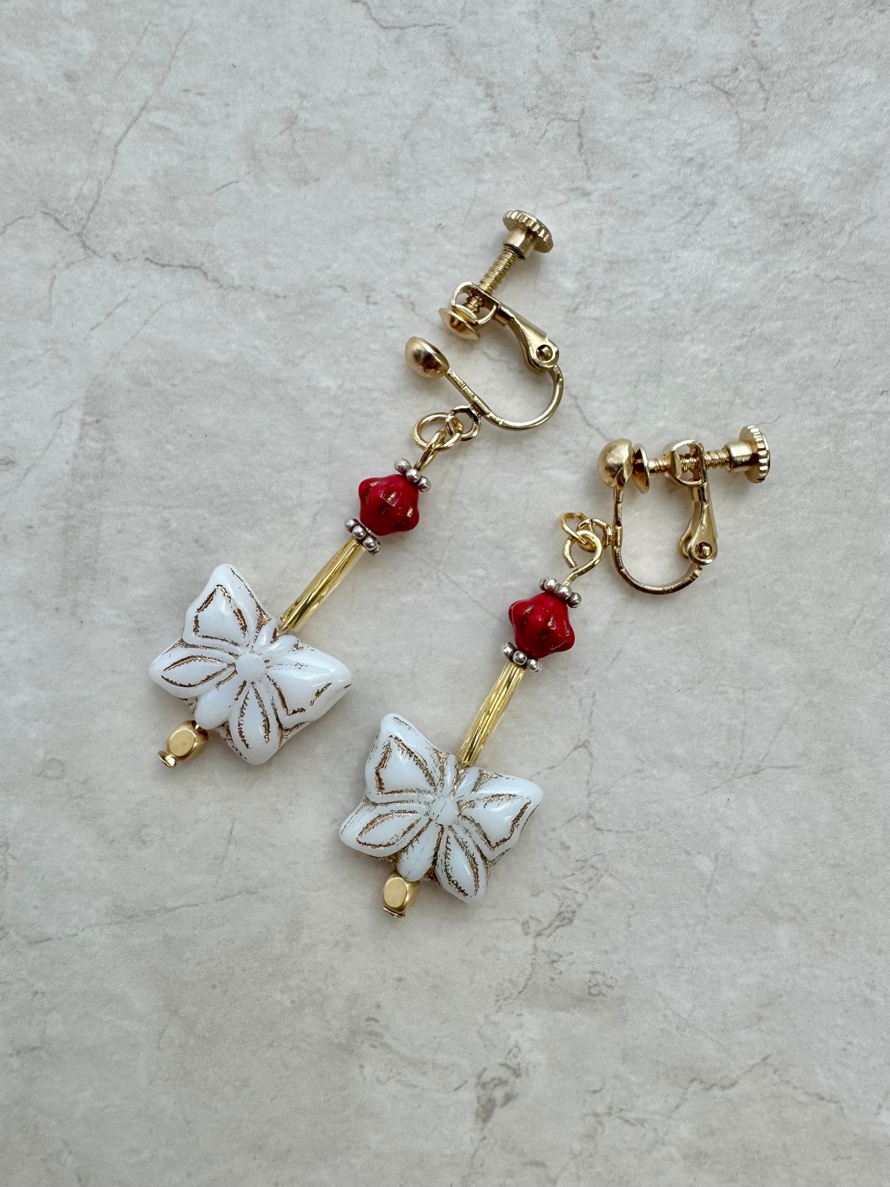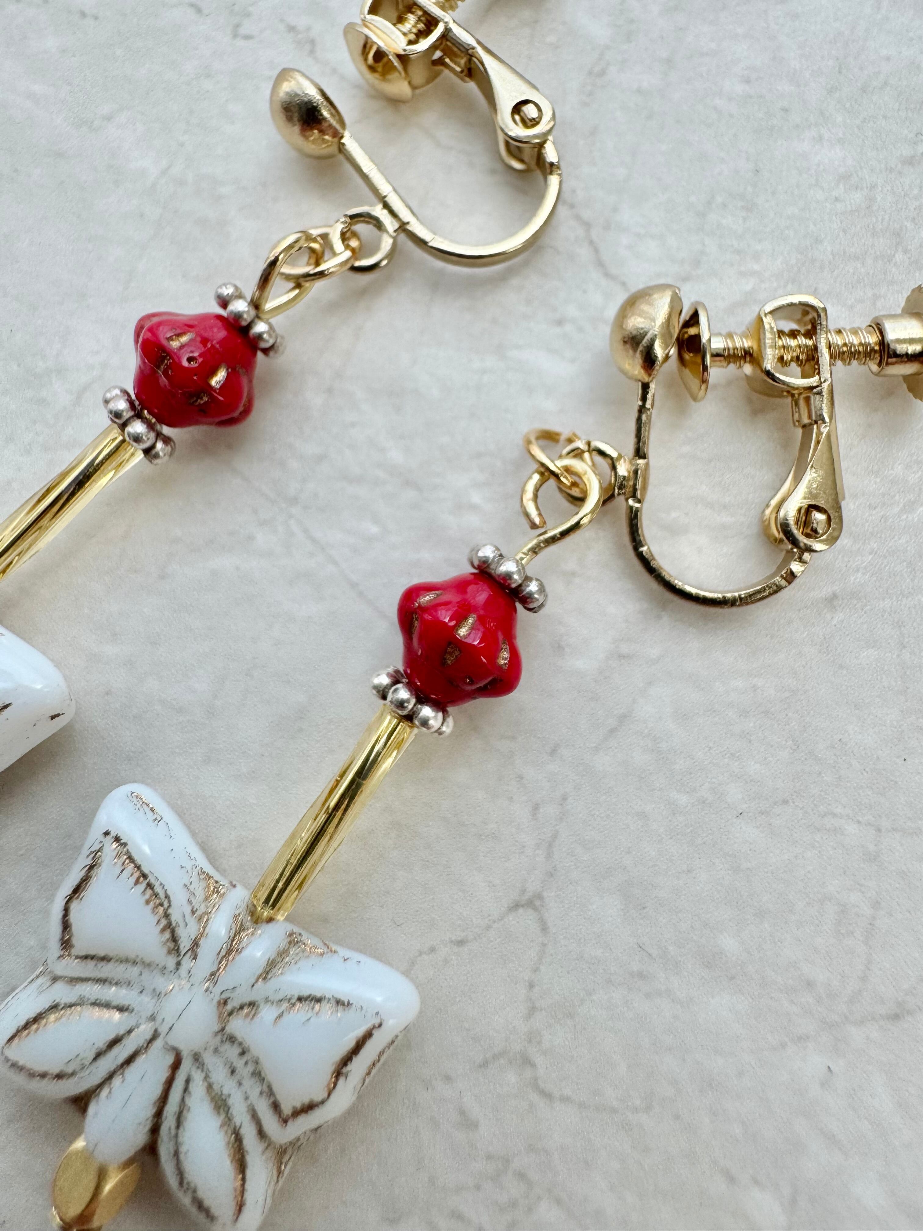 イヤリング / リボン / 赤 / 白 / ヴィンテージ / レトロ / クラシカル / 揺れるアクセサリー / ハンドメイド / 上品 / ガーリー