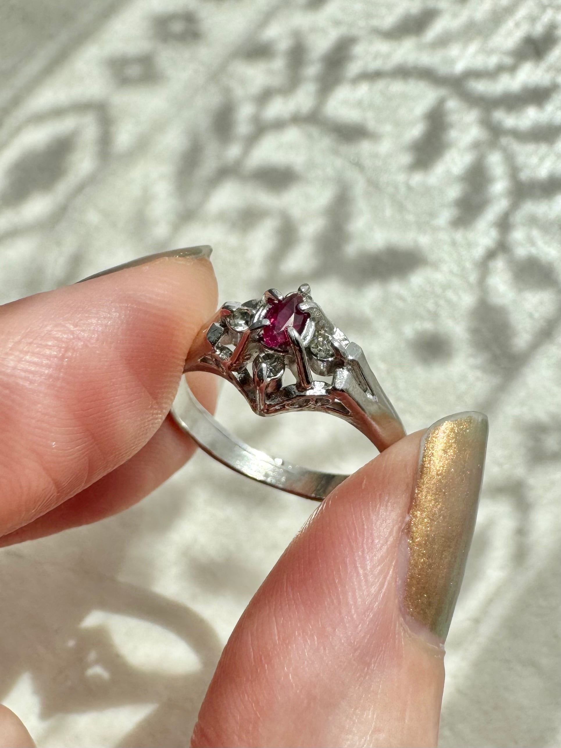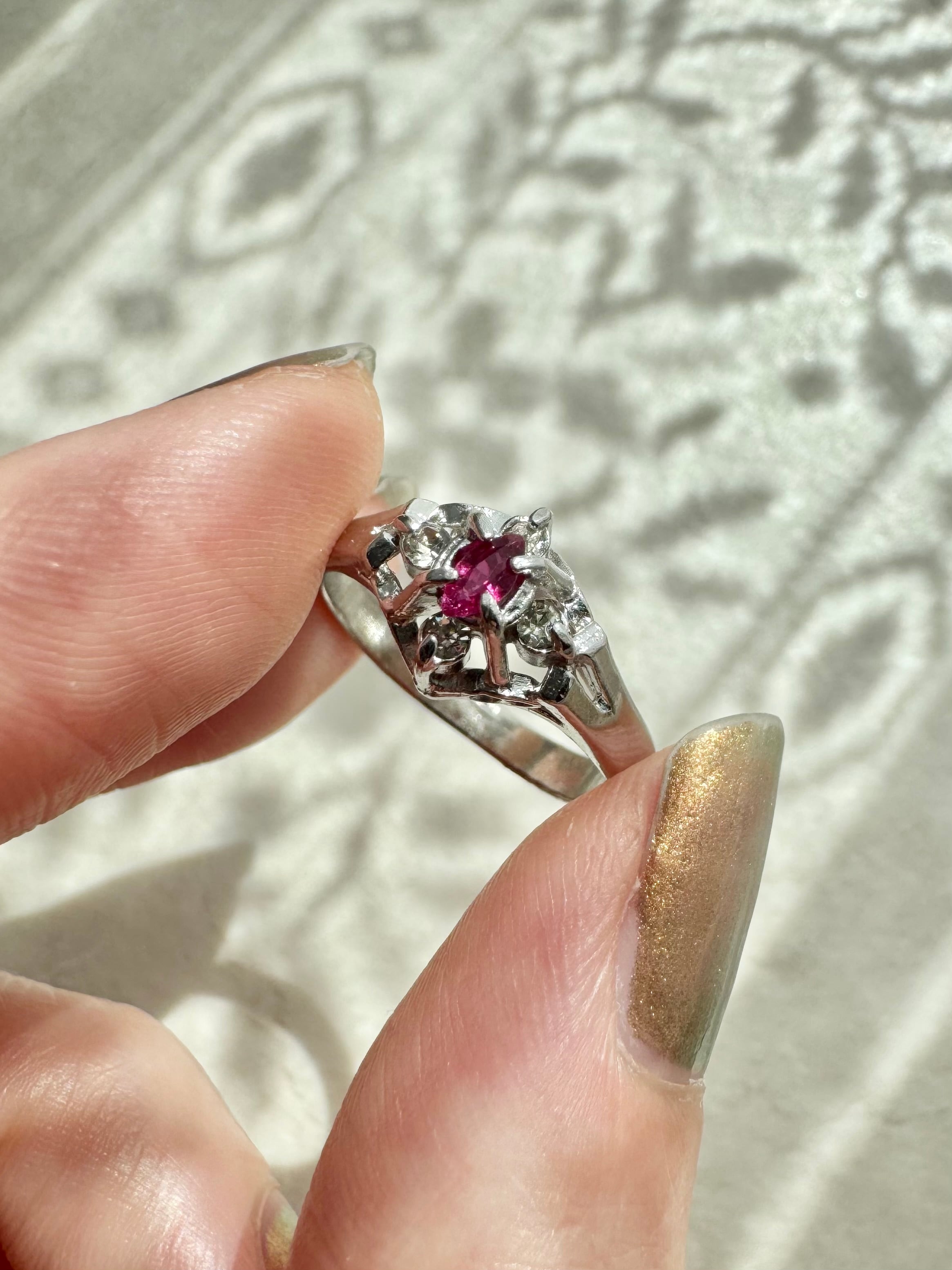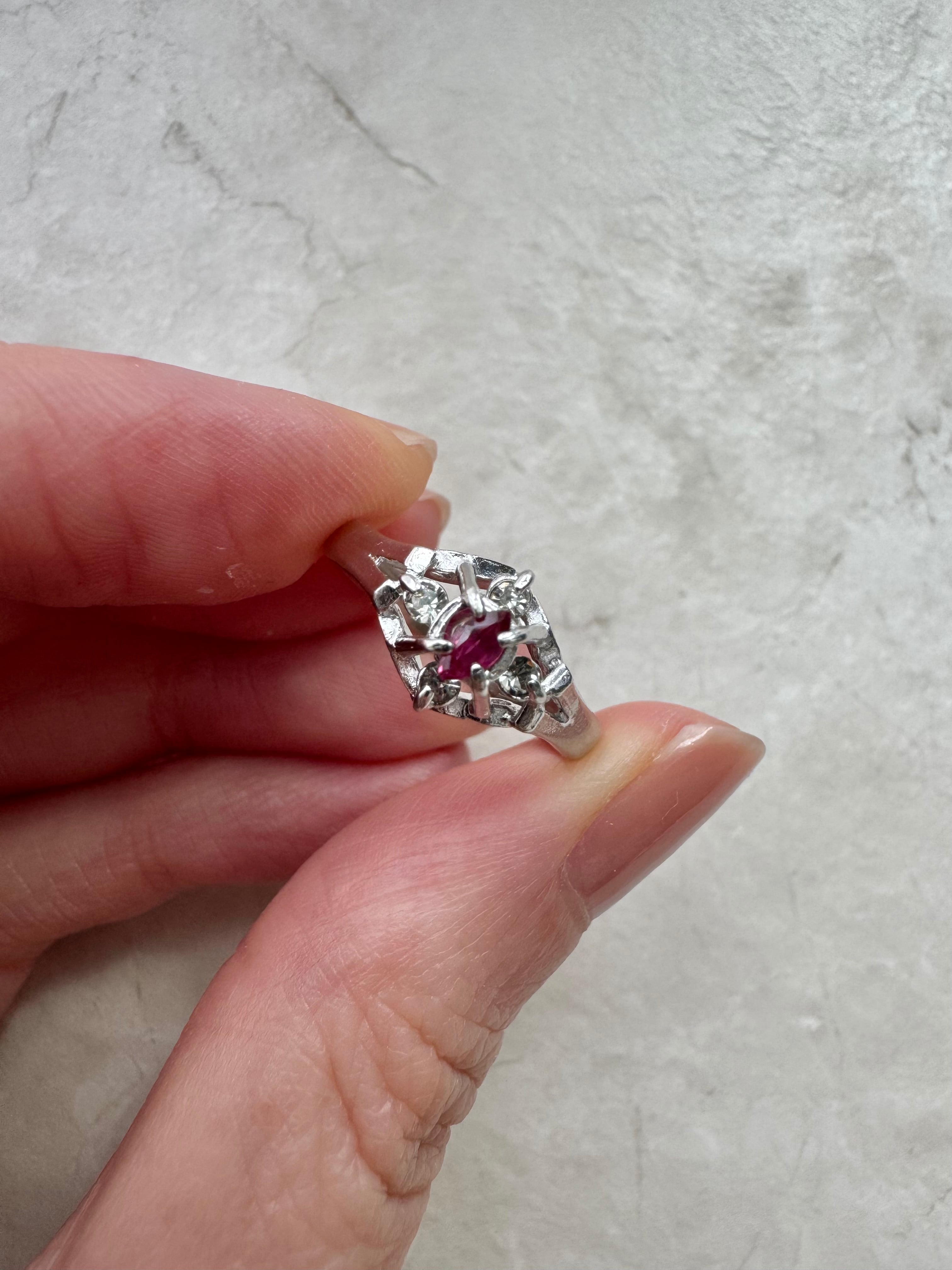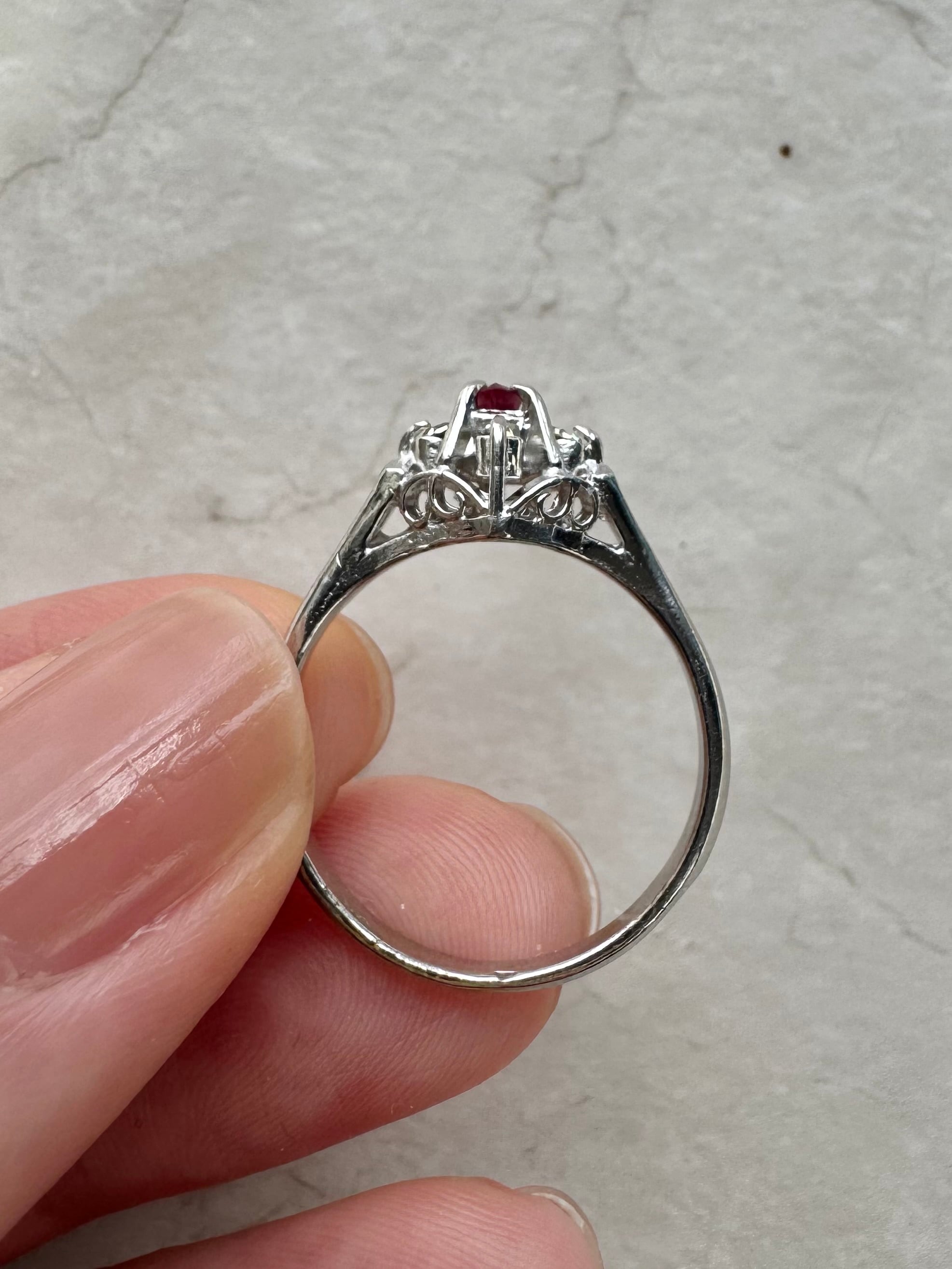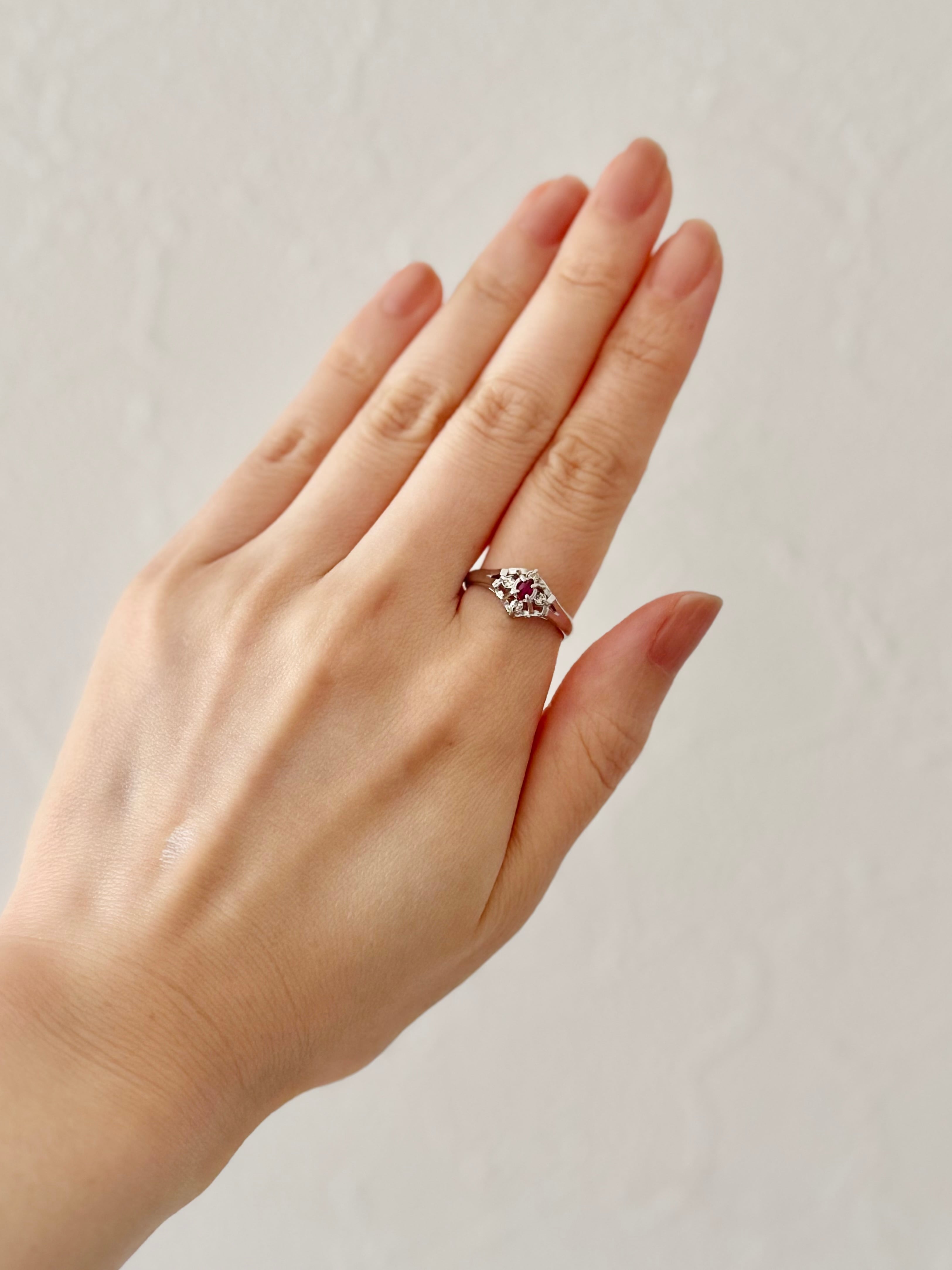 ヴィンテージリング / ルビーリング / 赤い石リング / アンティークリング / クラシカルジュエリー / レトロアクセサリー / 透かしリング / ゴールドリング / 昭和レトロ / 一点物アクセサリー