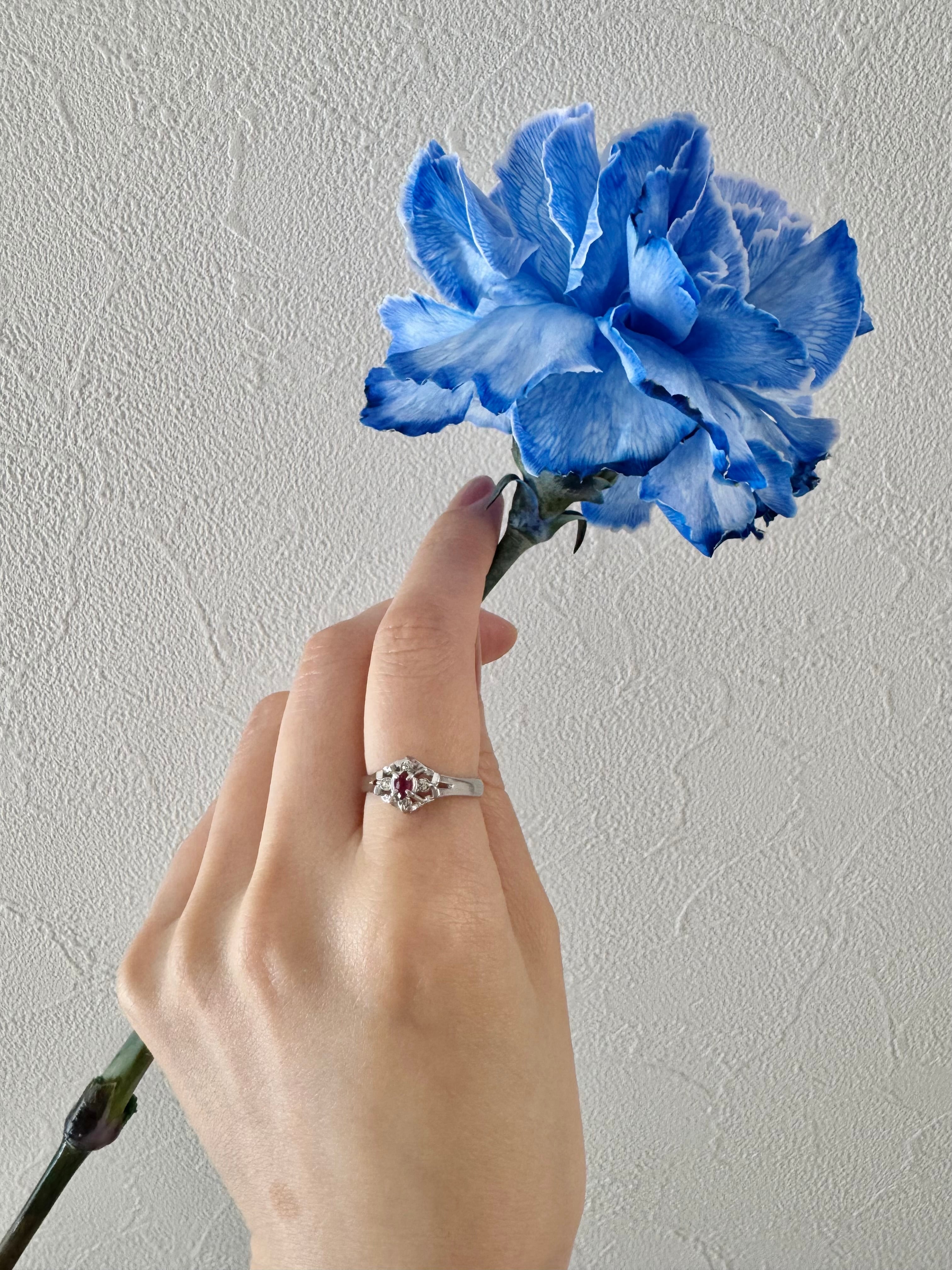 中央には深みのある赤が美しいルビーカラーのストーンをセッティング。