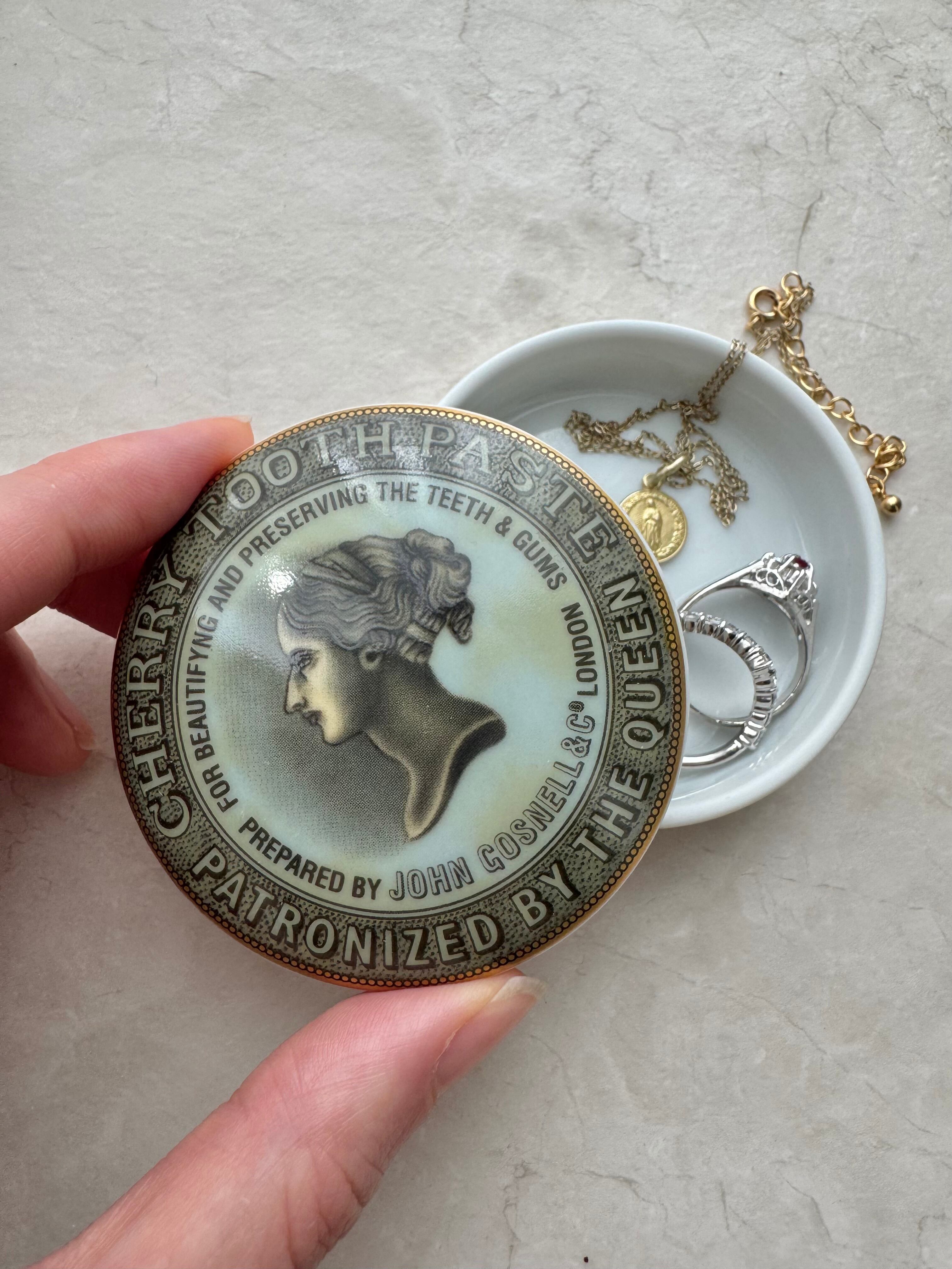 1522. アンティーク調 陶器ミニトレイ|ヴィクトリアン歯磨きラベルデザイン|小物入れ・アクセサリートレイ
