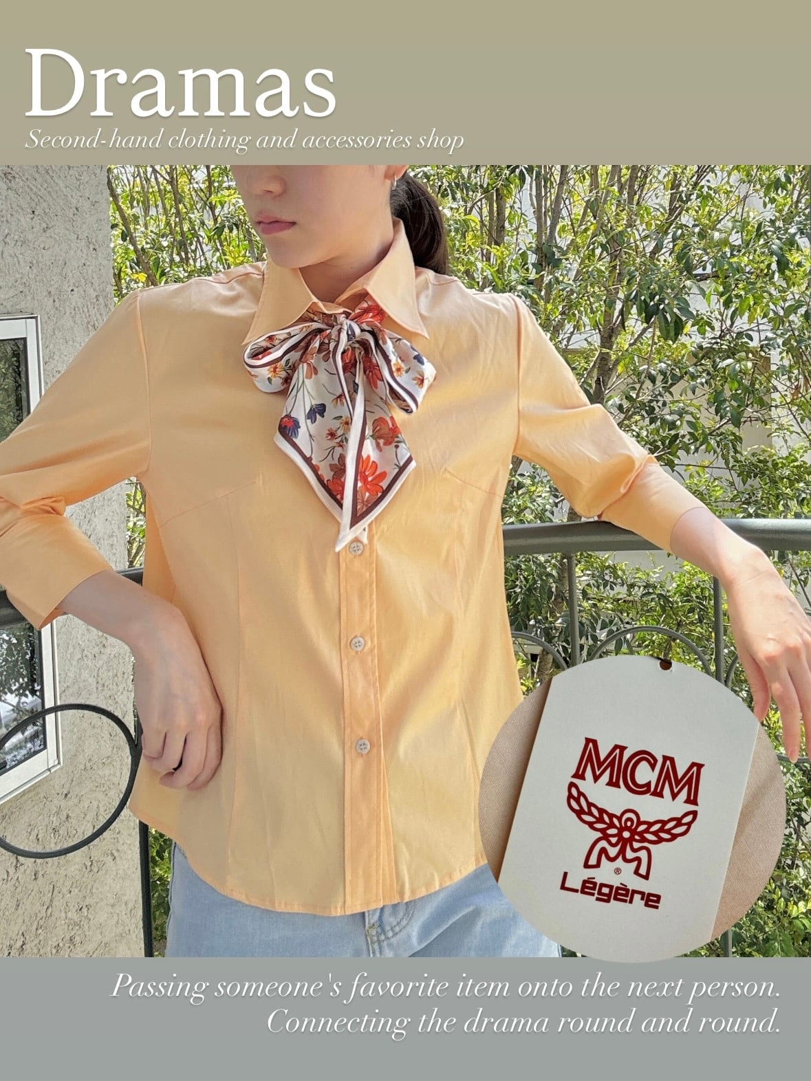 MCM / ブランド古着 / シャツ / レディースシャツ / ヴィンテージ / 未使用品 / タグ付き / ロゴ刺繍 / カラーシャツ / オレンジシャツ / 春夏コーデ / シンプルコーデ