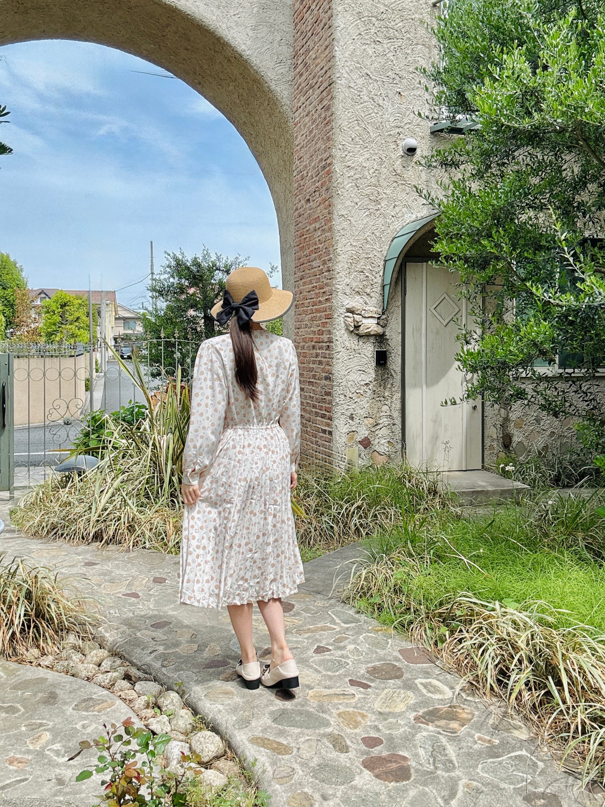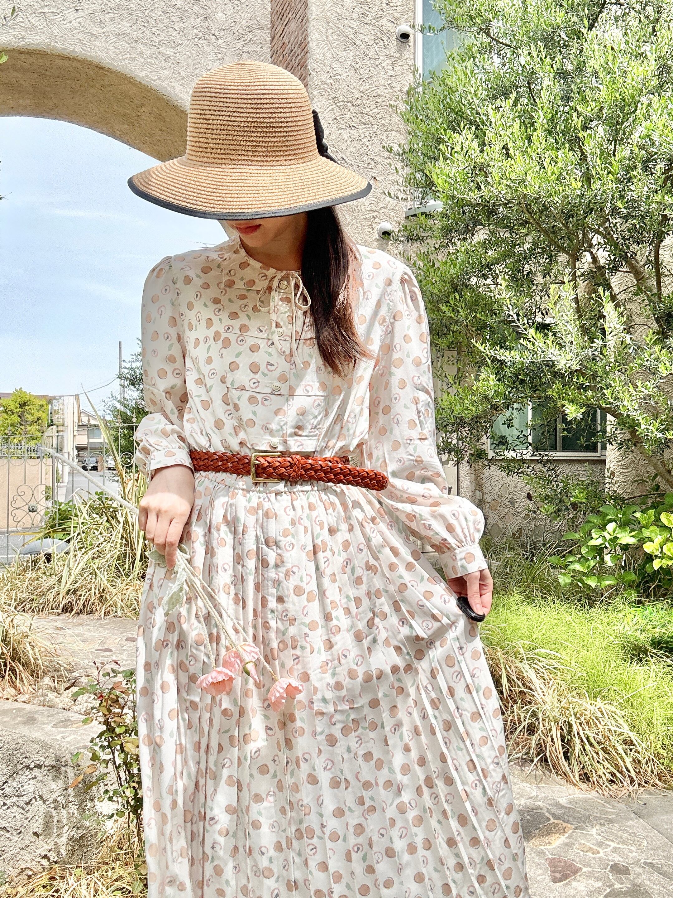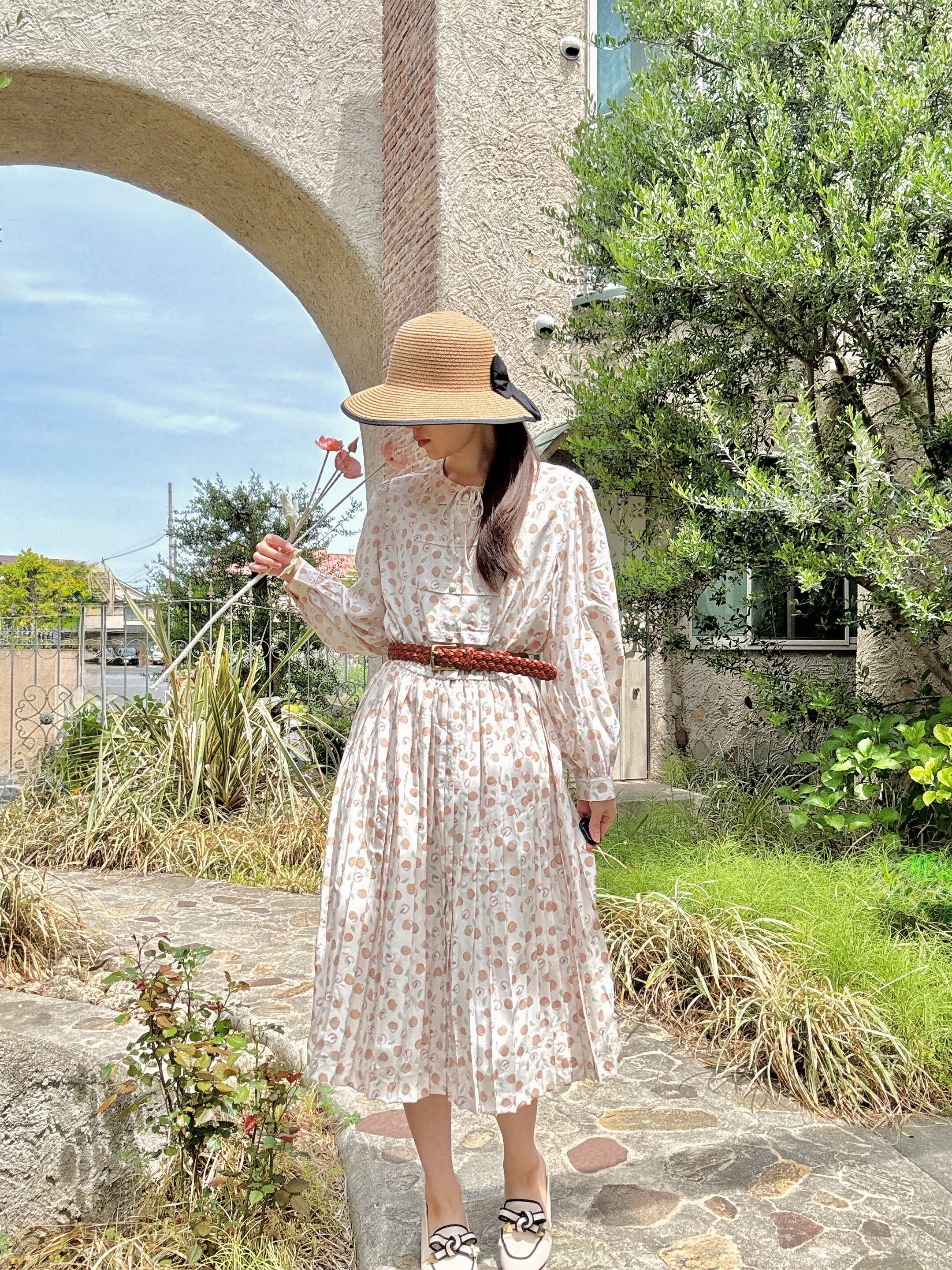 高島屋 / レトロワンピース / 総柄ワンピース / ヴィンテージ風 / フェミニン / ナチュラル / 春ワンピース / ウエストギャザー / リボンネック