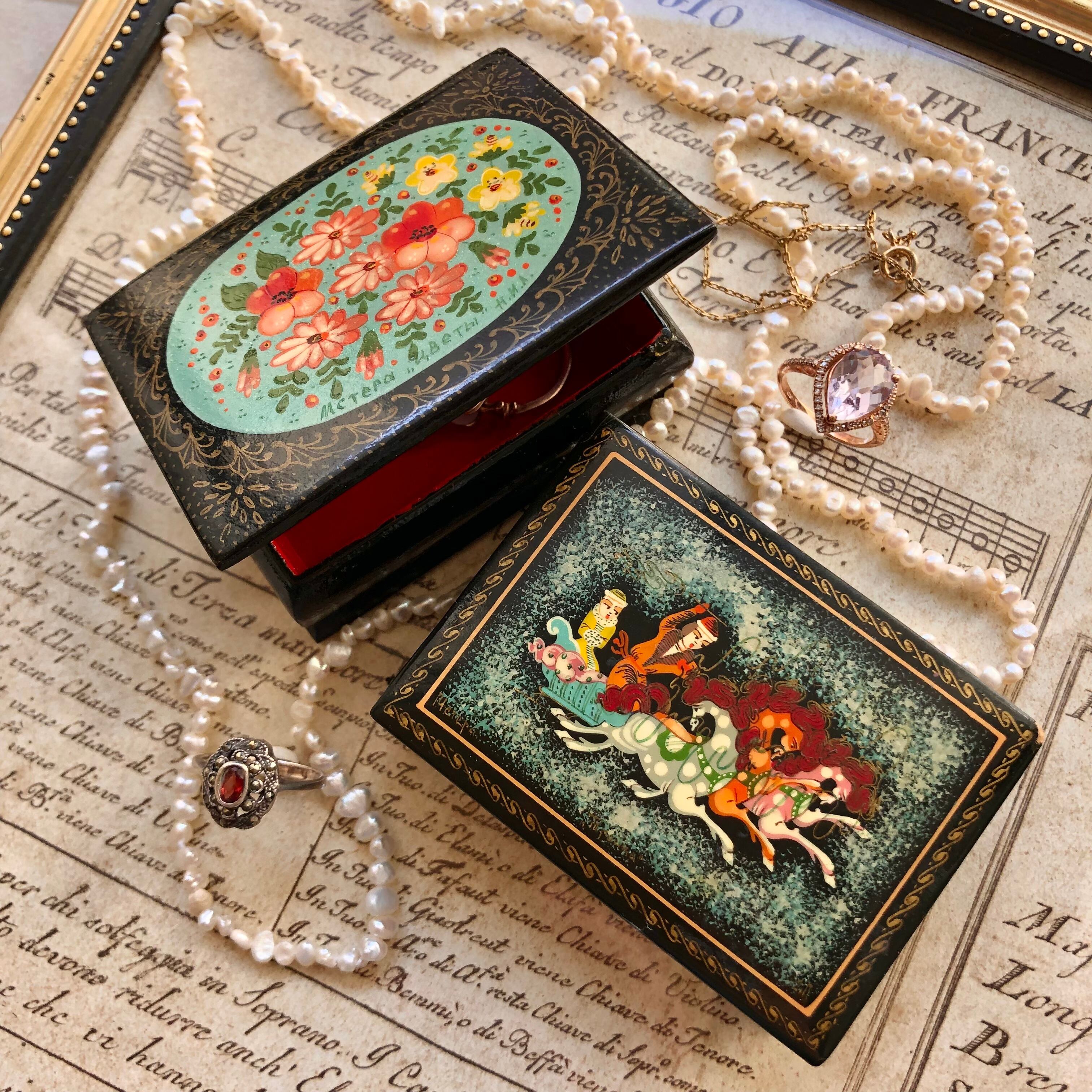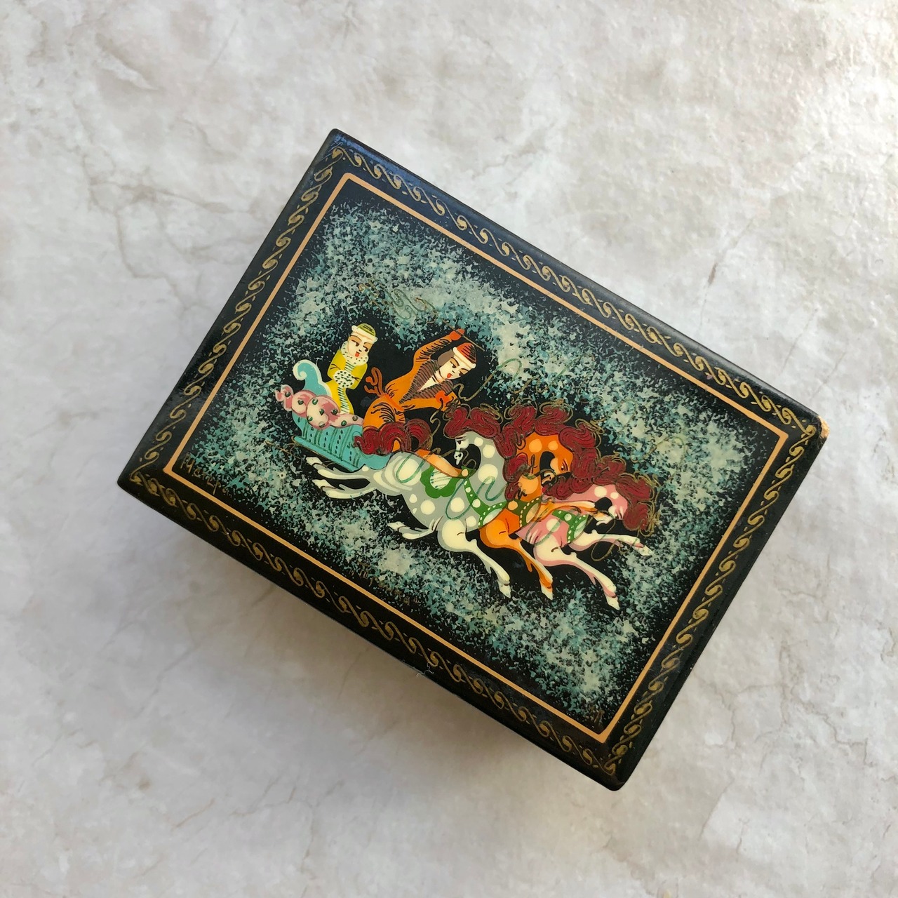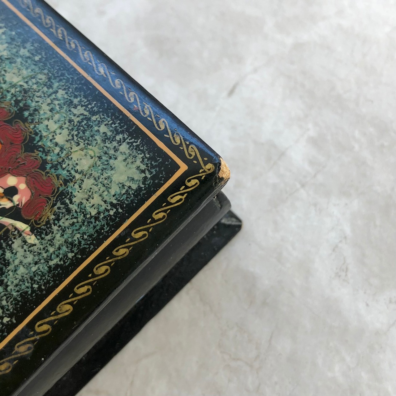 ロシアの伝統工芸ラッカー塗り細密画の小箱です。