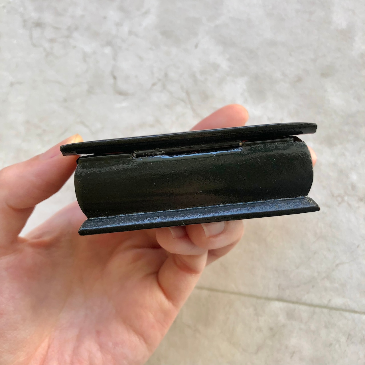 煤(すす)に粘土と亜麻仁油(リンシード油)を混ぜた塗料を箱に塗っていきます。 乾燥したら、サンドペーパーをかけ磨きます。さらに外は黒、中は赤の塗料を塗ります。赤と黒のコントラストが特徴です。
