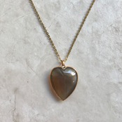 ぷるんとしたハート型のスモーキークォーツを14金イエローゴールドで囲んで留めたペンダントトップです。
