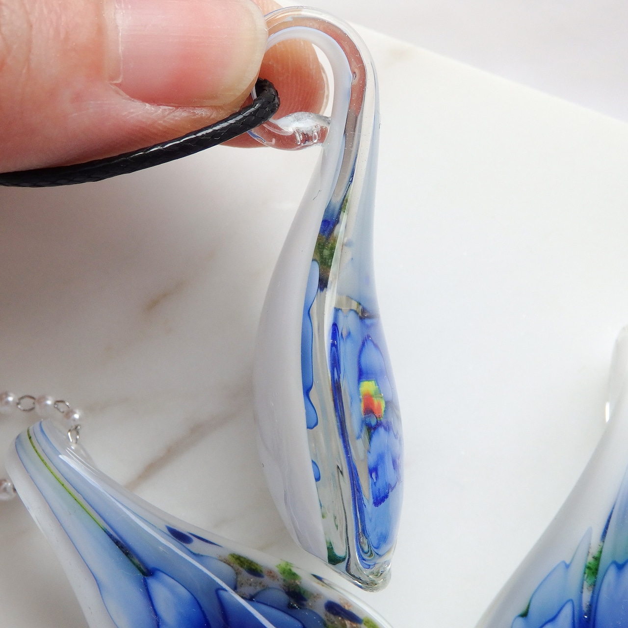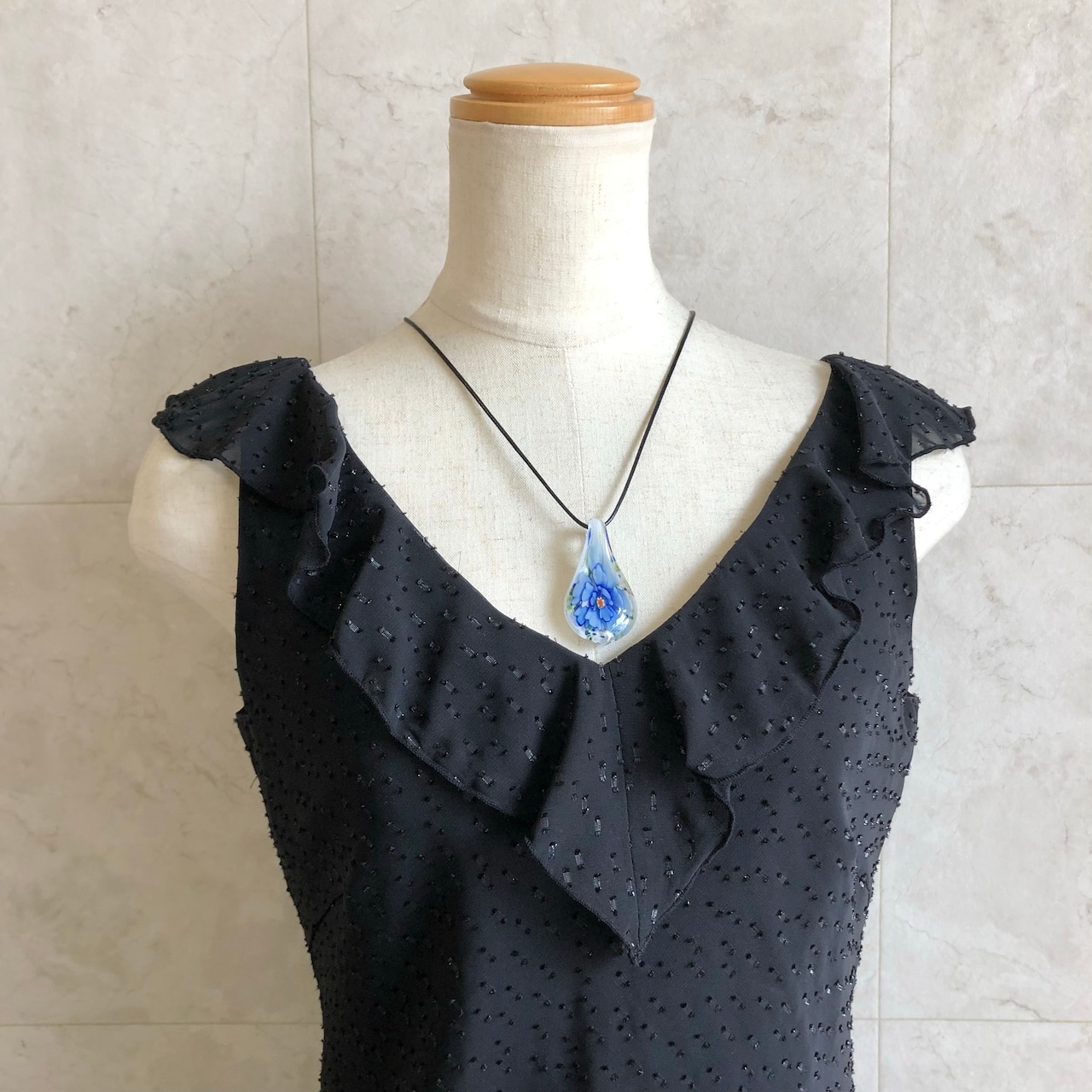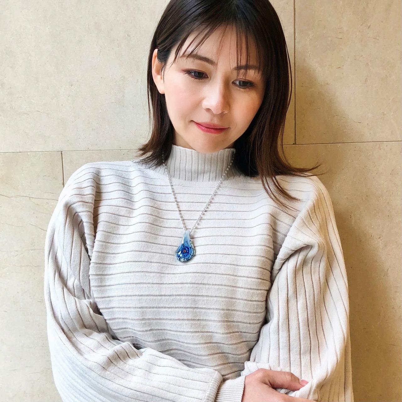 透明なガラスの中に青い花が立体的に浮かんでいるような美しいペンダントトップです。