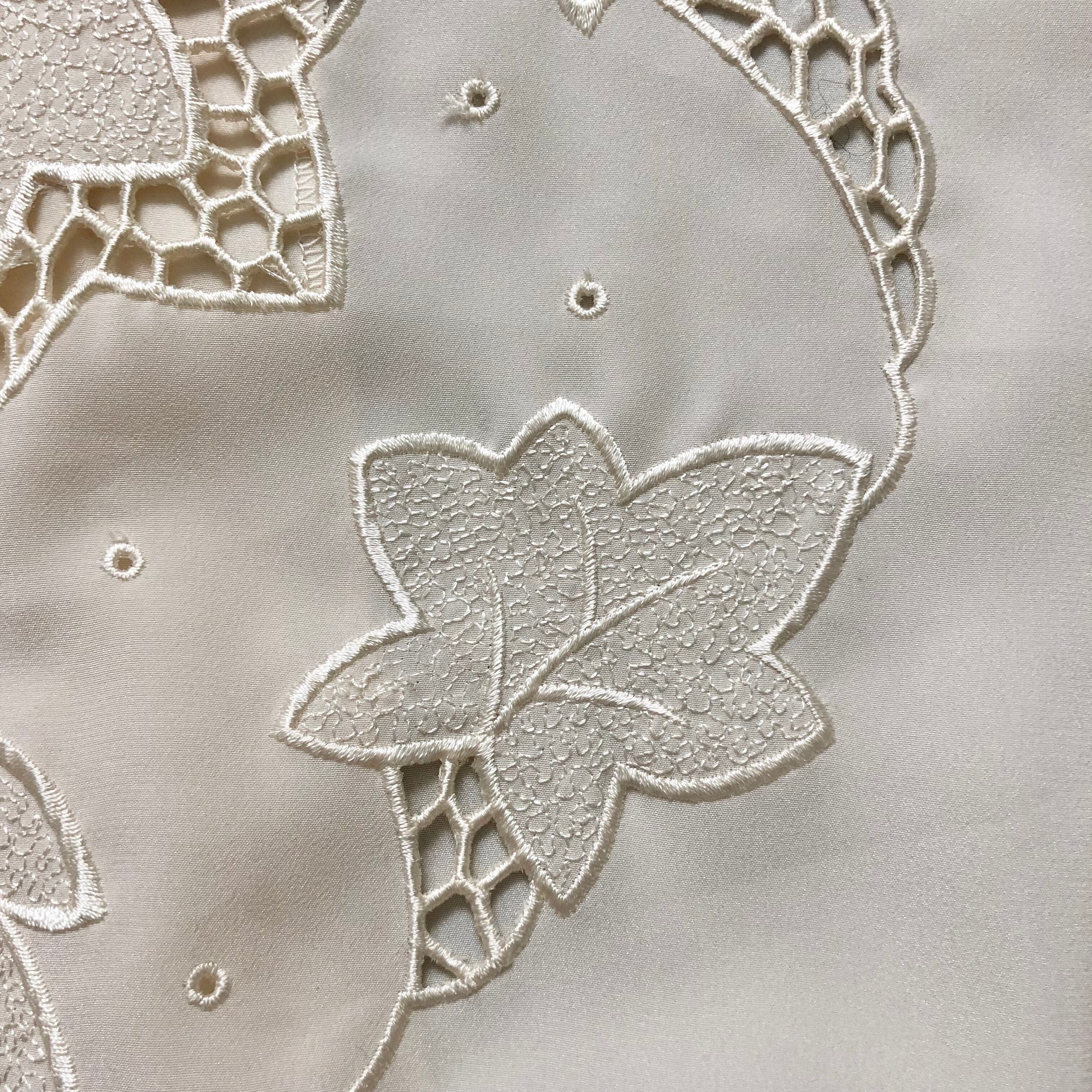 フロントの刺繍部分はスカラップになっていて透けているところがあります。