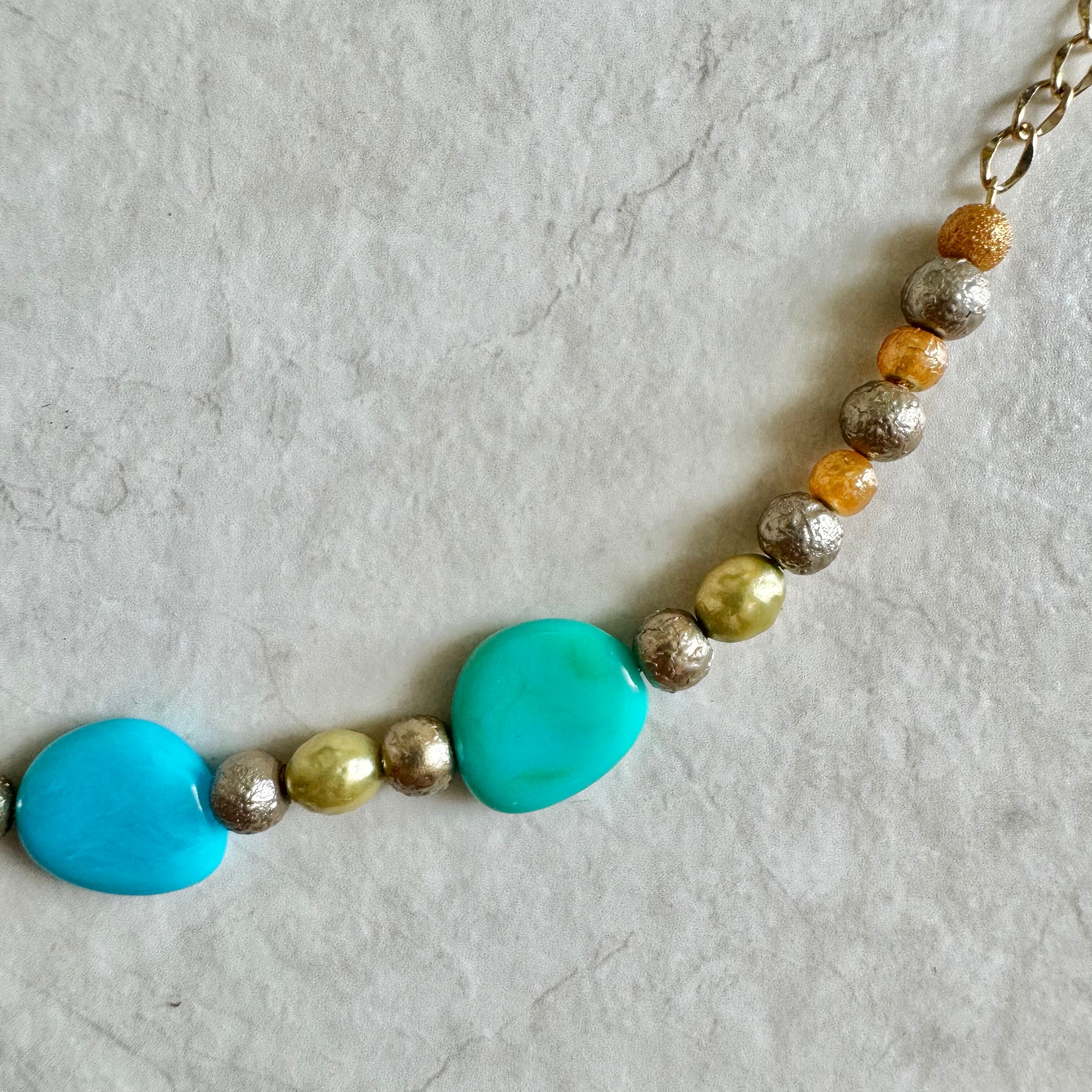 長さを調節して他のネックレスと重ね付けをするのもお勧めです。